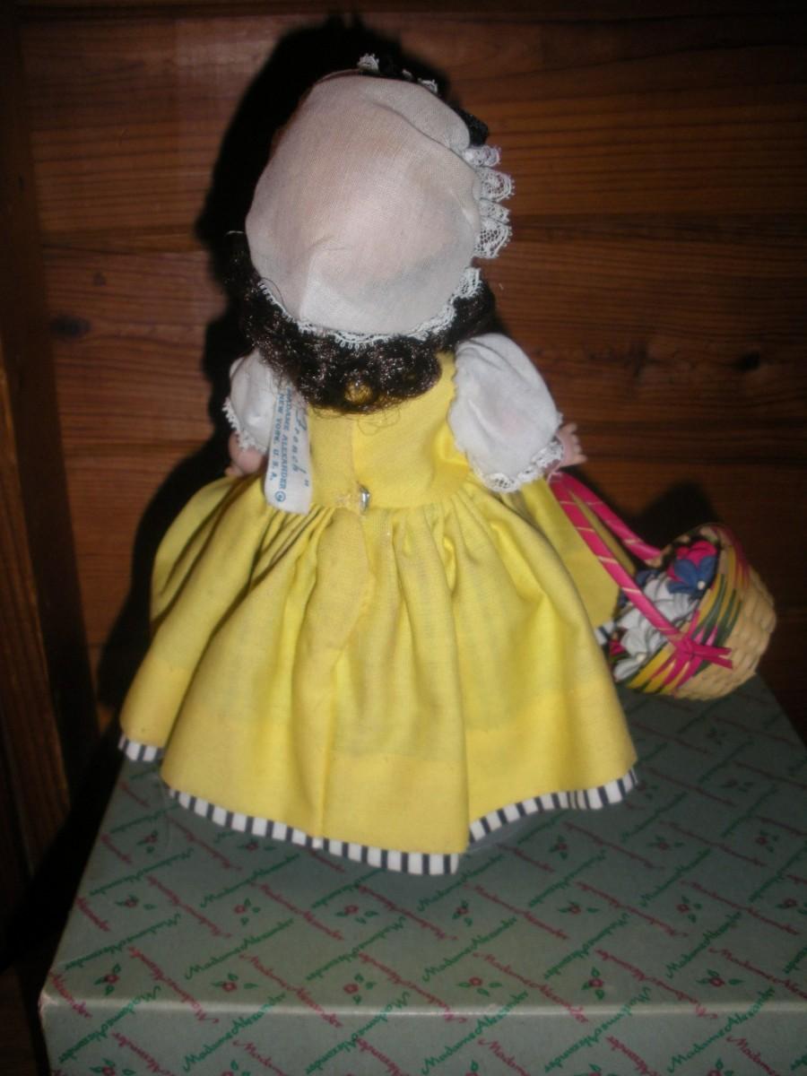 Adorable little girl over 55 years old! She is in excellent unplayed with condition. Has her original basket still on her wrist. She is in her original box which is in good to very good condition. Has the black and white label which signifies older dolls. She is different than the ones marked France which were introduced in the 1970's. Bent knees work as they should.