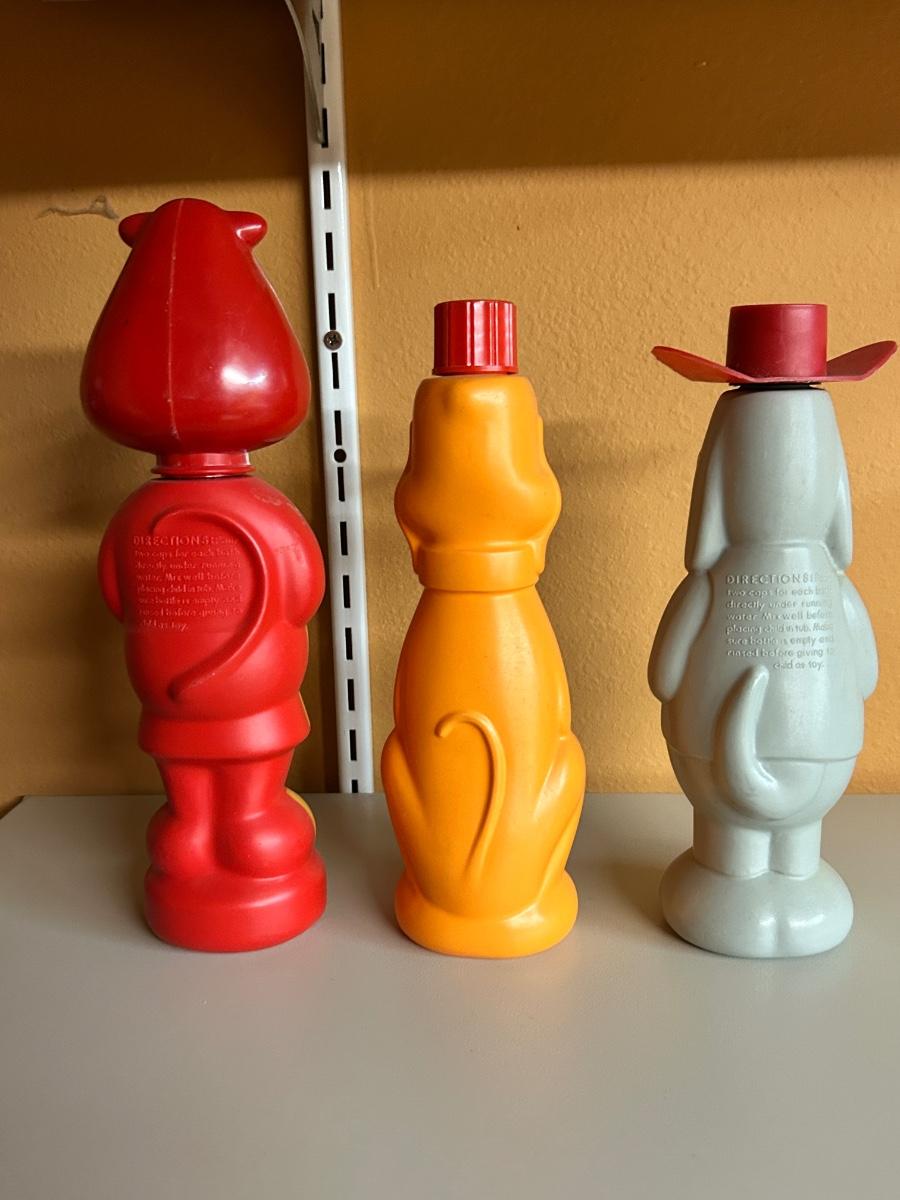 1965 SOAKY BUBBLE BATH CHARACTER BOTTLES