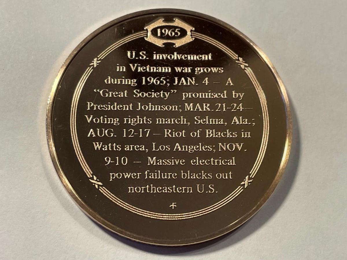 1965 U.S. BECOMES MORE INVOLVED IN VIETNAM WAR FRANKLIN MINT PROOF BRONZE MEDAL (MEDAL #107). FREE DOMESTIC SHIPPING.