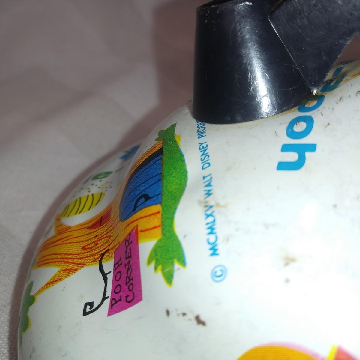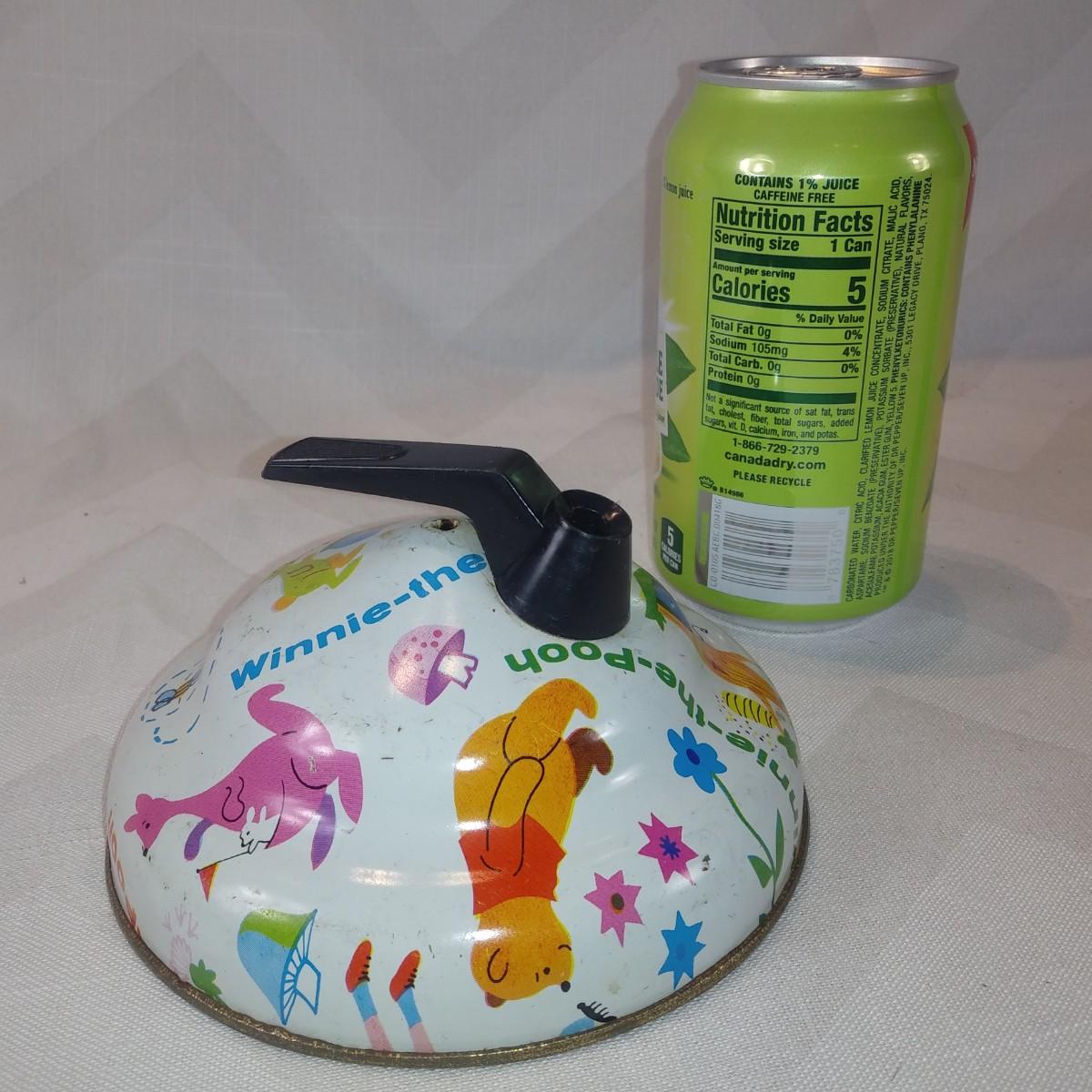 This auction lot is for a Vintage "Winnie the Poo" Toy Tea Pot. It seems to be a rare toy tea pot made by Disney. Marked MCMLXV Disney Prod. (1965) Shows usual wear from use and age. It is made of metal.