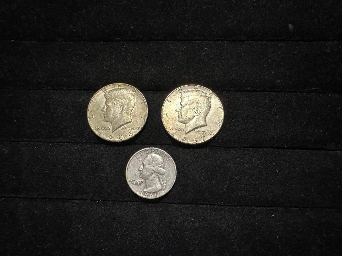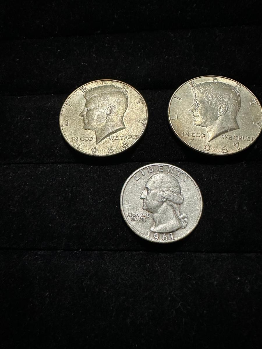 1966 & 1967 KENNEDY HALF DOLLARS AND 1961 QUARTER