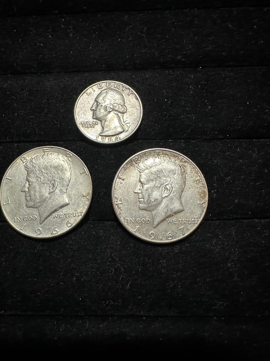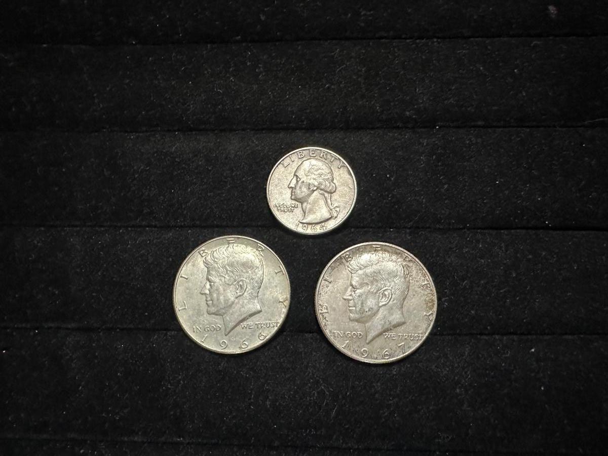 1966 & 1967 KENNEDY HALF DOLLARS AND 1964 QUARTER