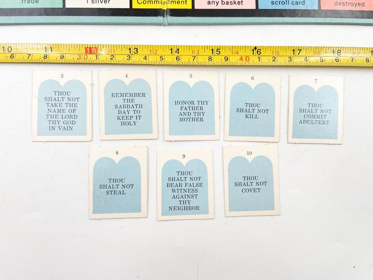 Please see photos for details. One set of “ten commandment” cards is missing two of the cards - as pictured.