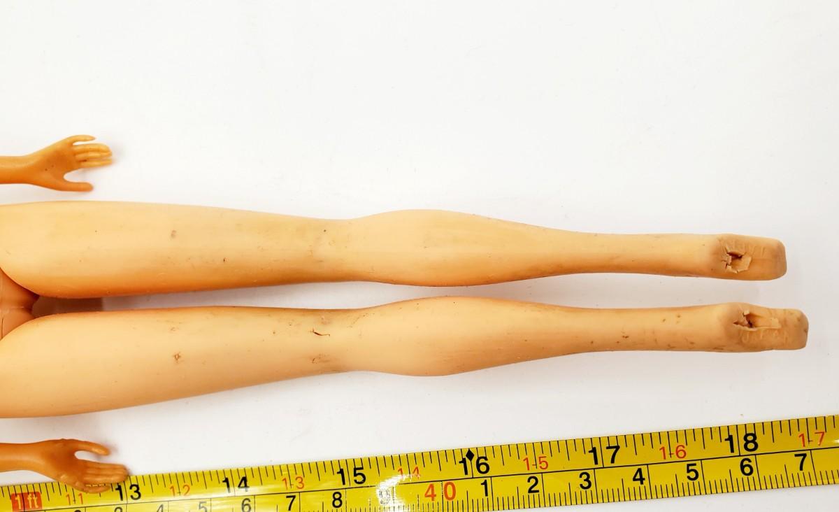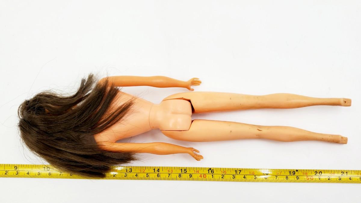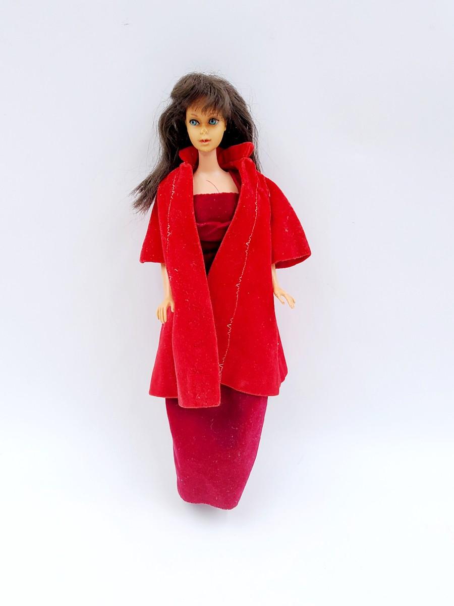 This 1966 Barbie has brown hair and blue eyes, she swivels at the waist as she should. Her nose does have some wear as do her legs and a crack in her pelvic area, please see photos. 1966 Mattel ,Inc Japan stamped on back, see photos. Legs still bend. Clothing included although they may be handmade, I did not see a Barbie tag. She does have some minor flaws but still an awesome addition to any Barbie collection!