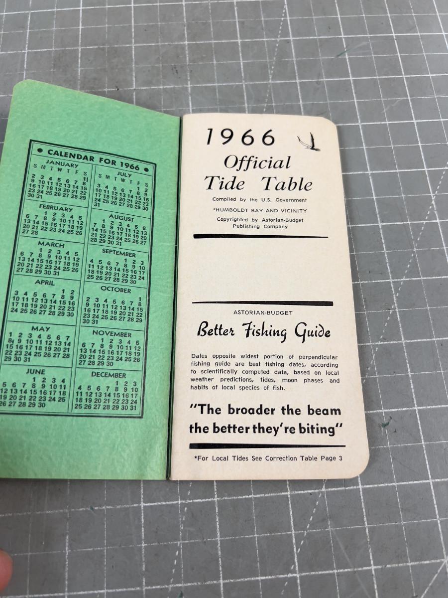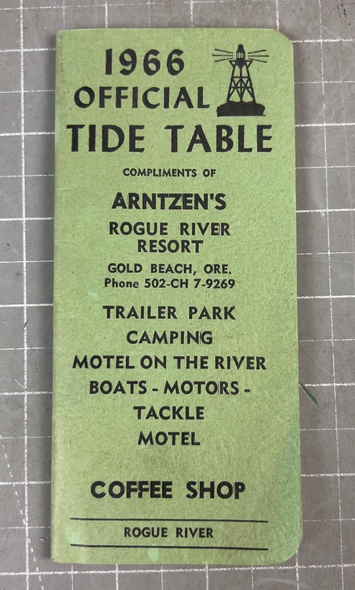 1966 Official TIDE TABLE Compliments of ARNITZEN Rogue River Resort