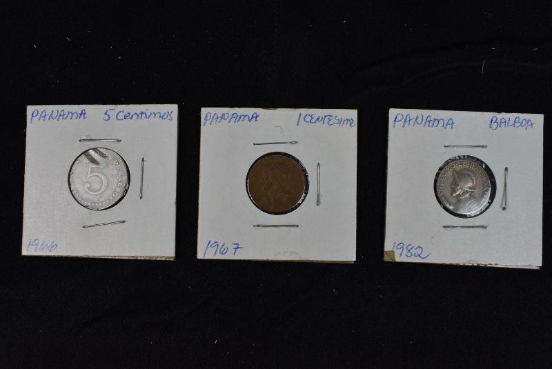 1966 Panama 5 Centesimos, 1967 Panama 1 Centesimo, and 1982 Panama Balboa