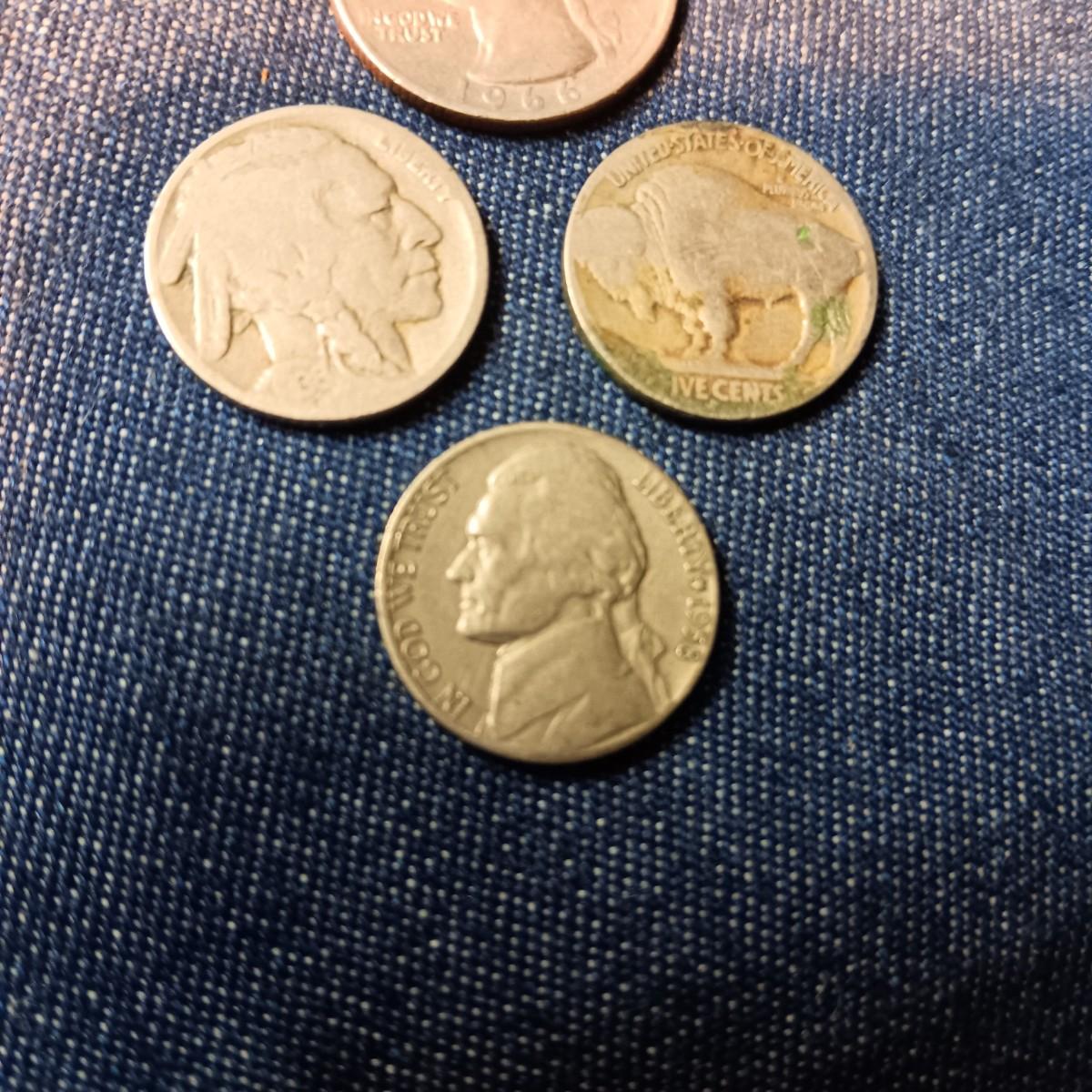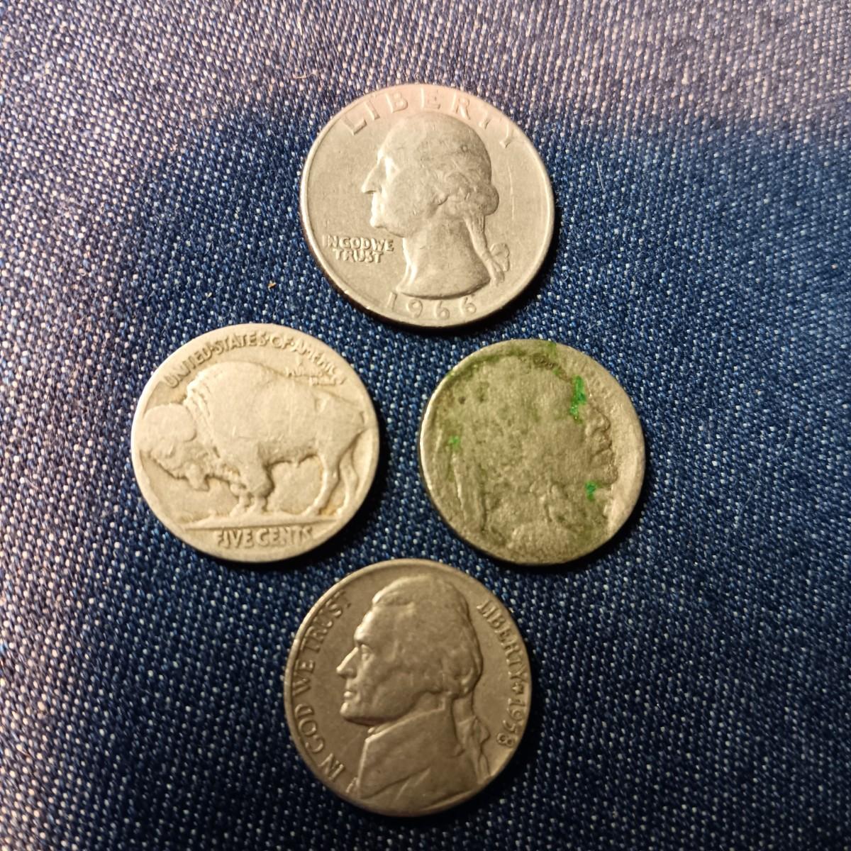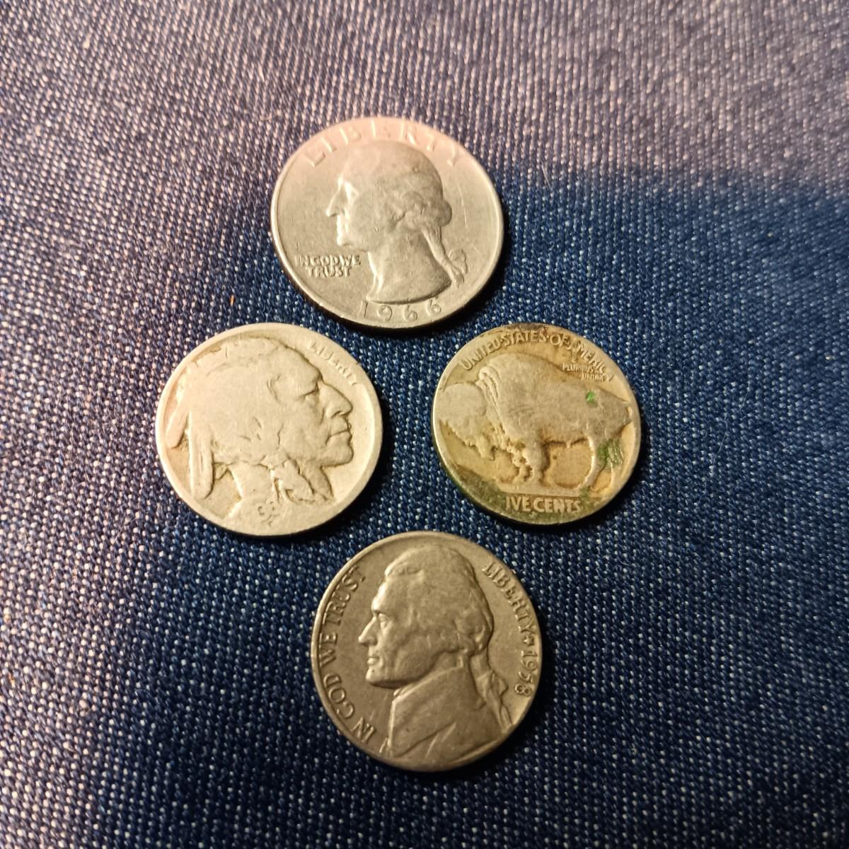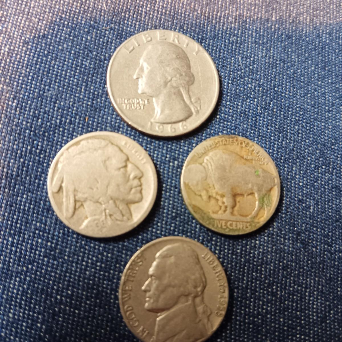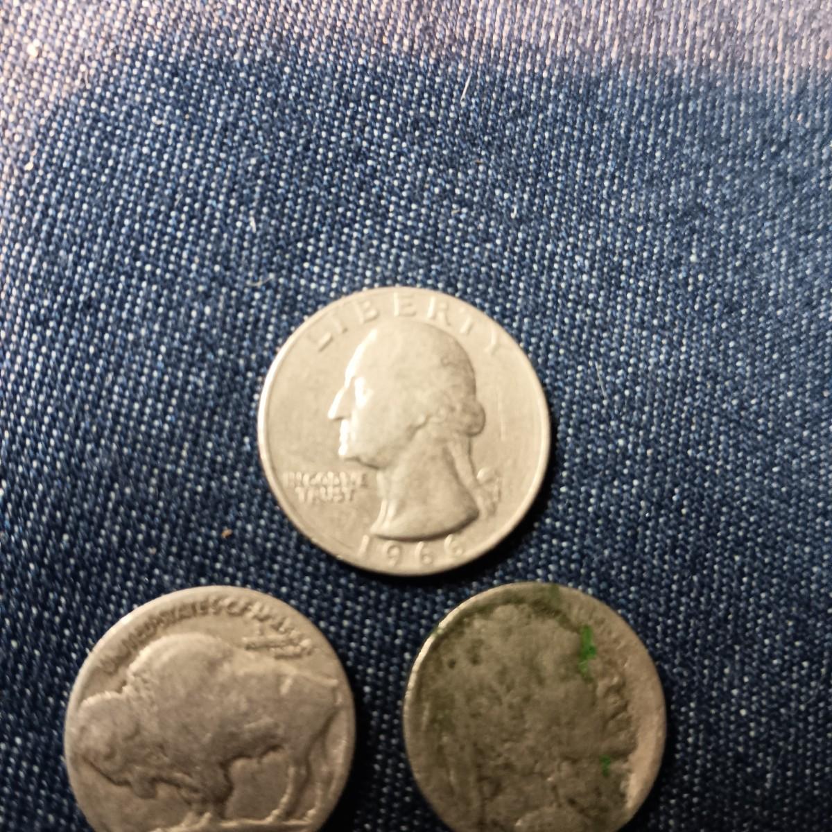 1966 QUARTER, 2 INDIAN HEAD & ONE 1958 NICKELS