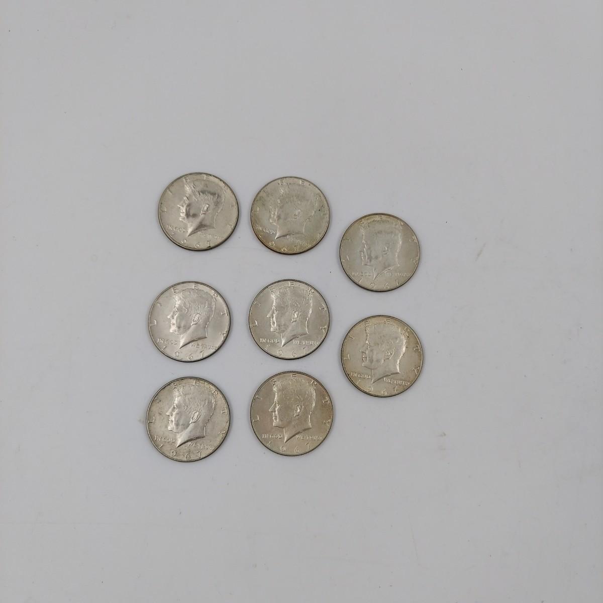 1967 40% SILVER JFK HALF DOLLARS 8 pc