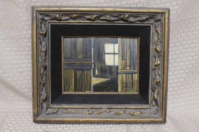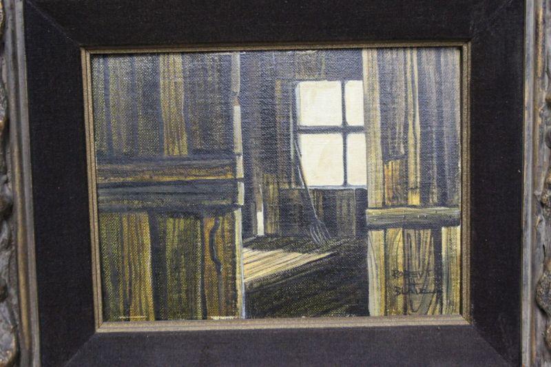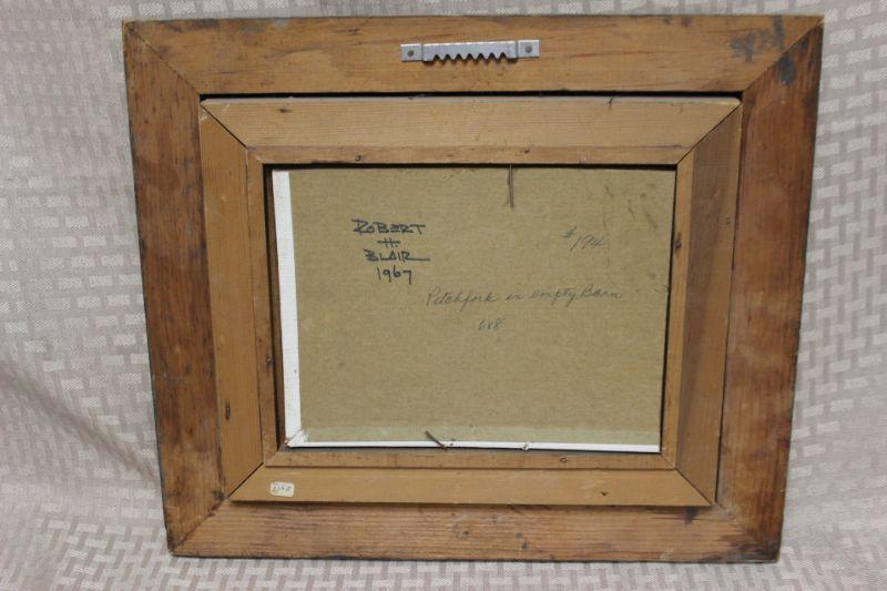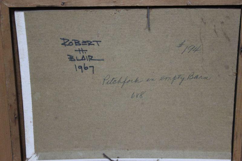 1967 Original Robert H Blair Oil Painting "Pitchfork in Empty Barn". Painting is 6x8, framed 14x12.
