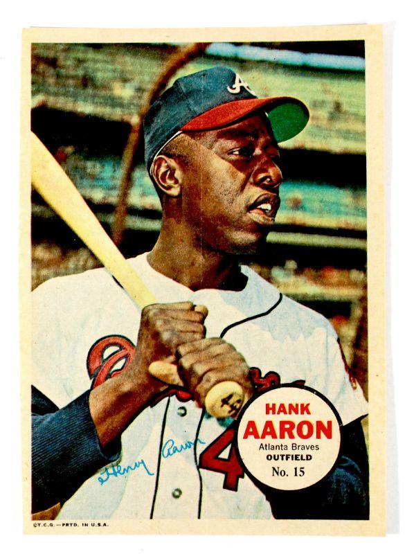 1967 TOPPS HANK AARON #15 Insert Card PIN-UP POSTER - HOF Atlanta Braves 5"x7" EX Excellent