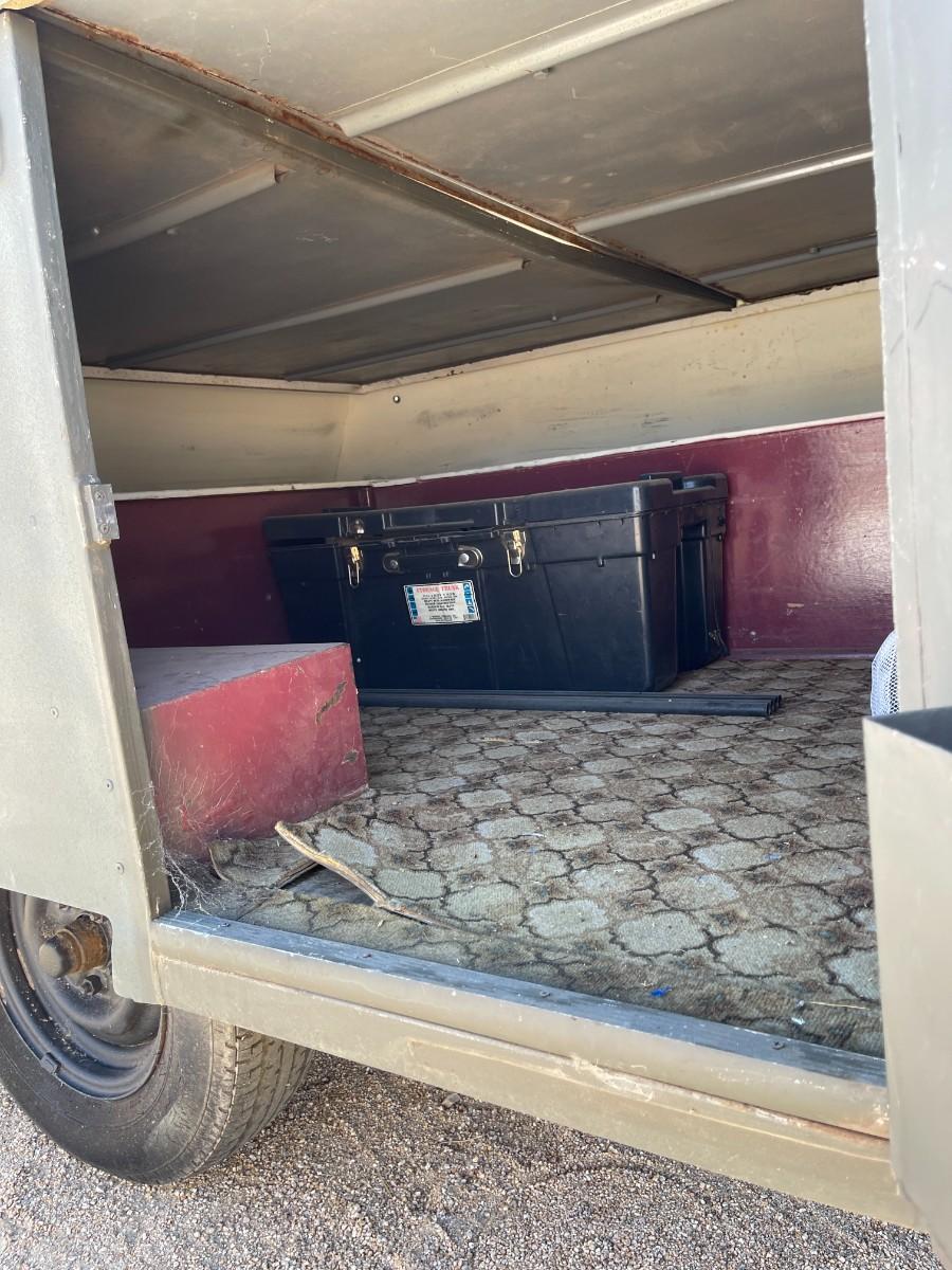 Has been gutted with exception of L-shaped storage bench. 2" ball receiver.