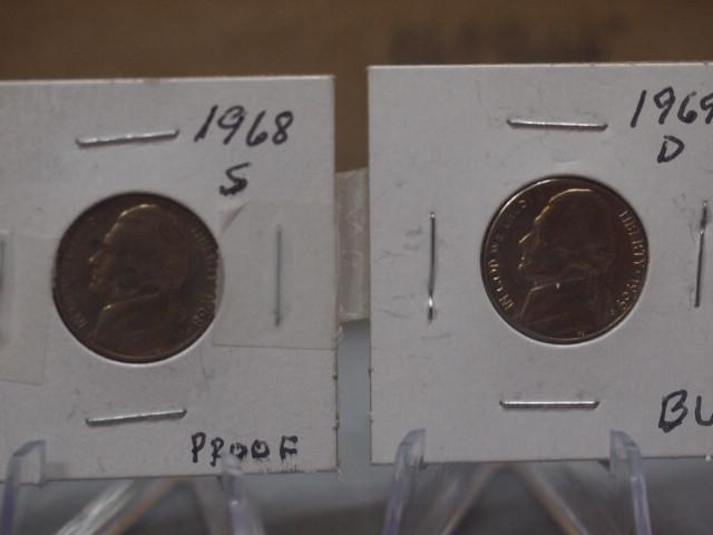 1968 S and a 1969 D nickels the 68 is in Proof condition and the 69 is in BU condition