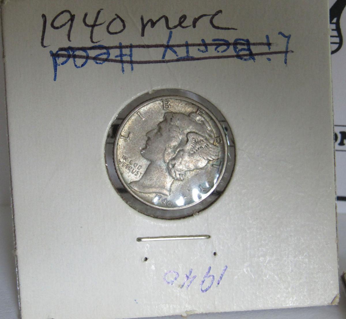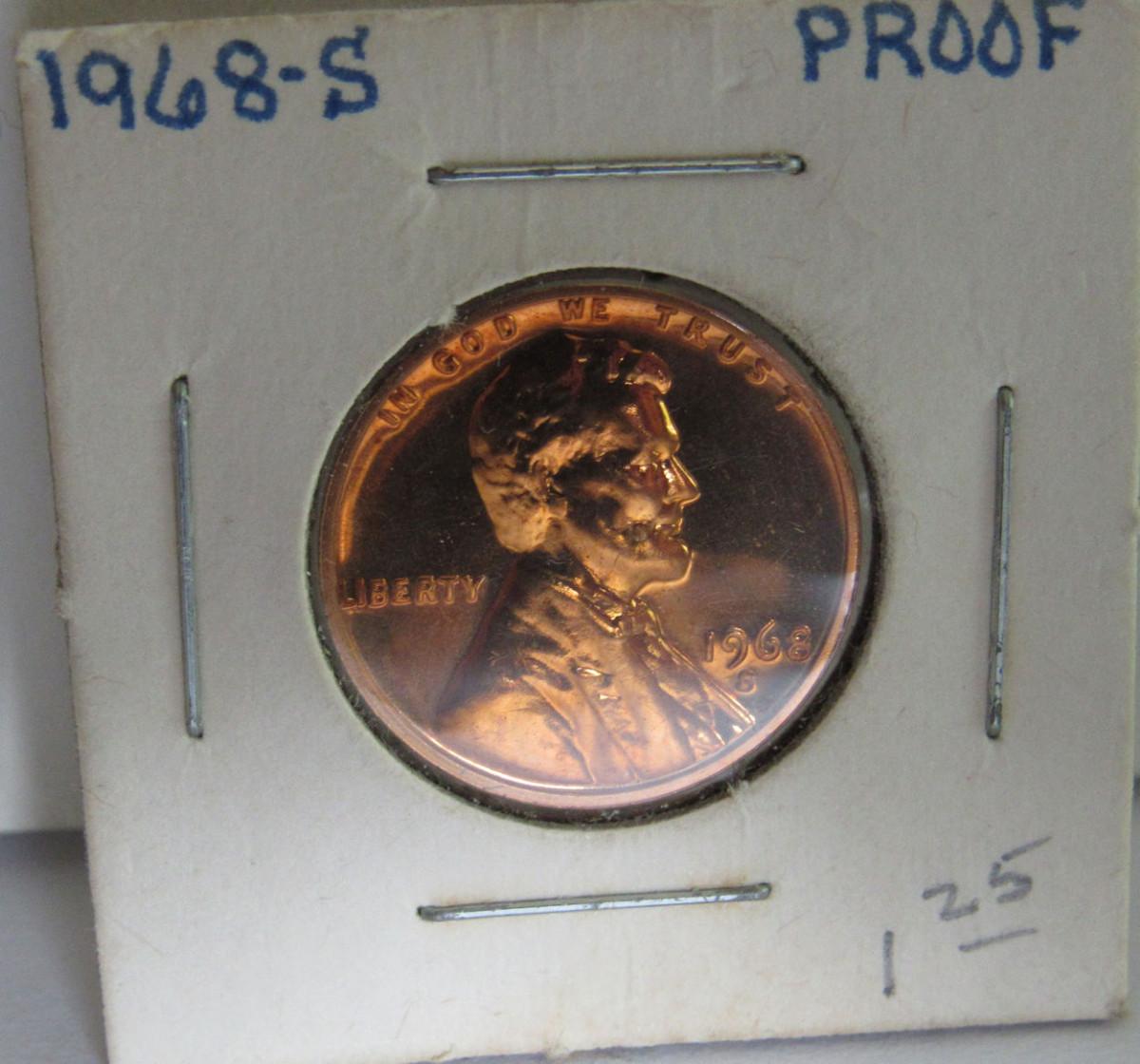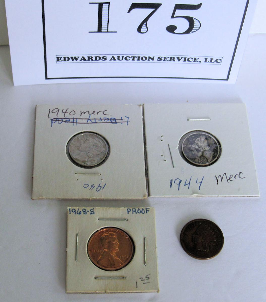 1968 S Proof Penny, 1905 Indianhead Penny, 1940 and 1944 Mercury Dimes