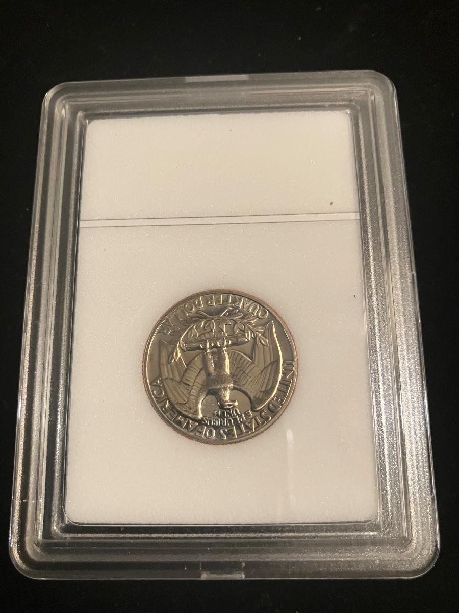 1968-S Washington Quarter in proof condition, graded GEM PROOF by International Numismatic Bureau (INB) and housed in their protective slab (cert #2212960638).