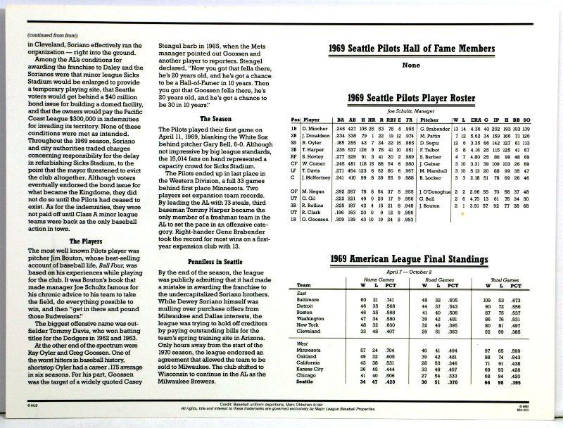 1969 SEATTLE PILOTS BASEBALL TEAM PATCH - Cooperstown Collection by Willabee & Ward