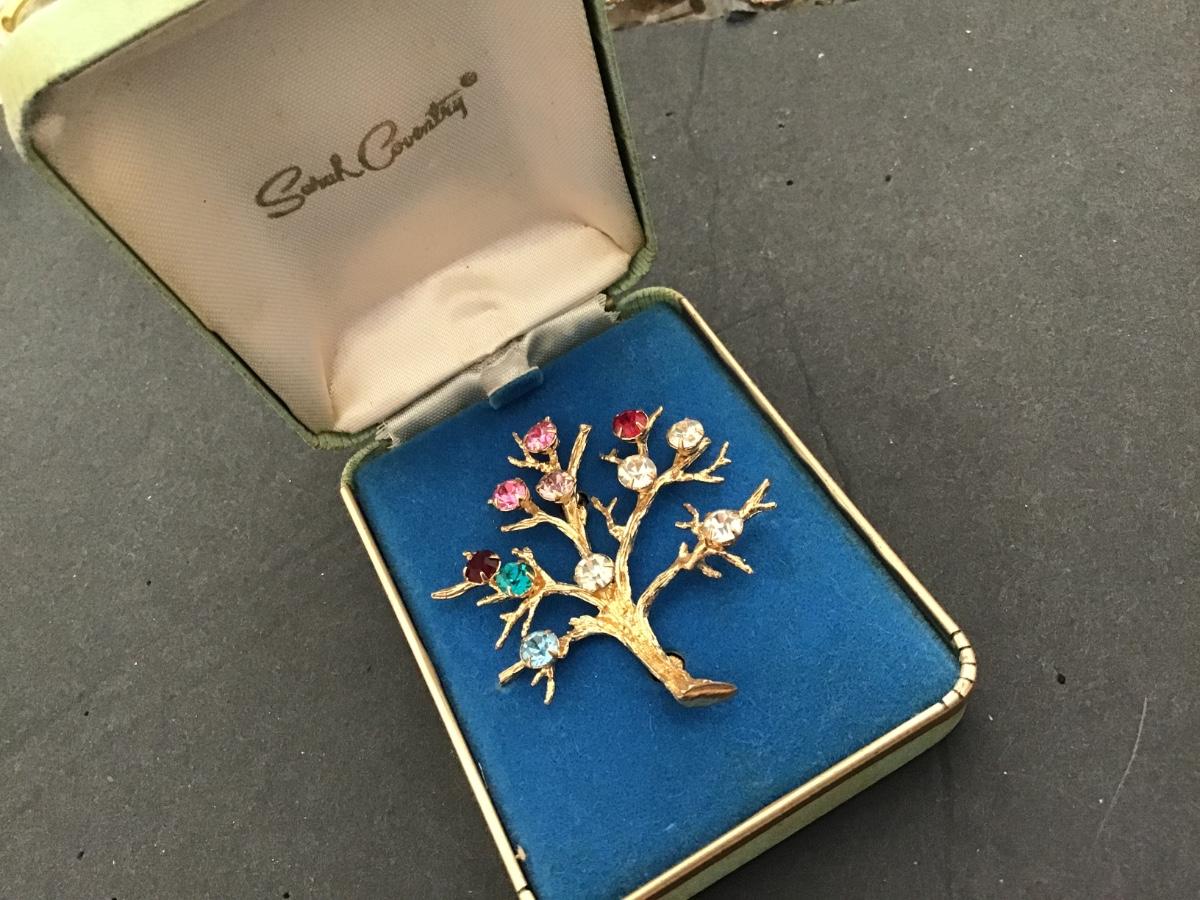 1969 Tree Rhinestone Gold Tone New in Box Vintage Sarah Coventry