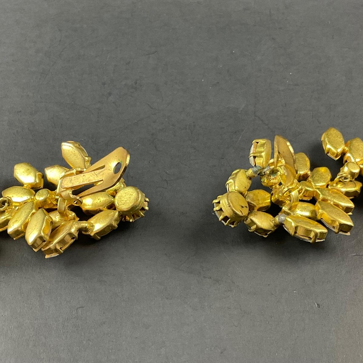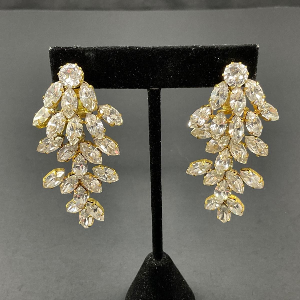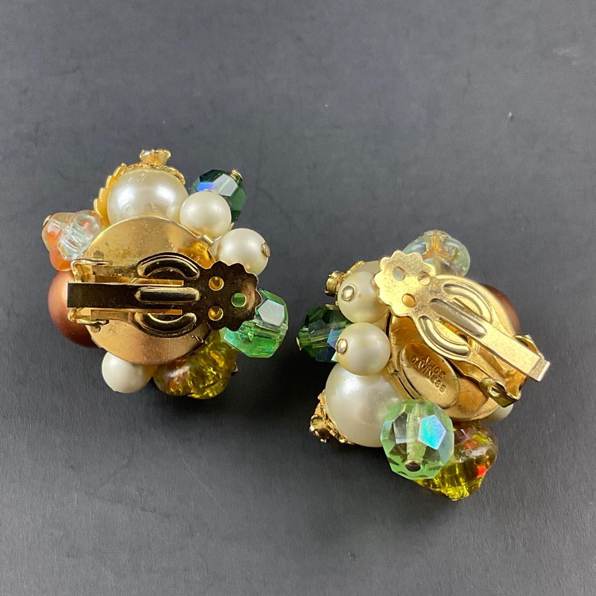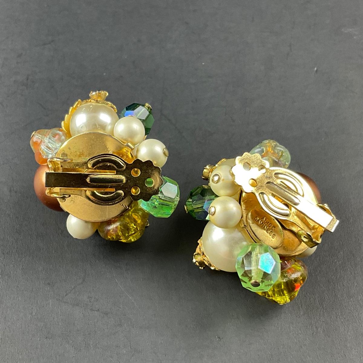 -197- ALICE CAVINESS | Clip Beaded & Rhinestone Earrings | Marked