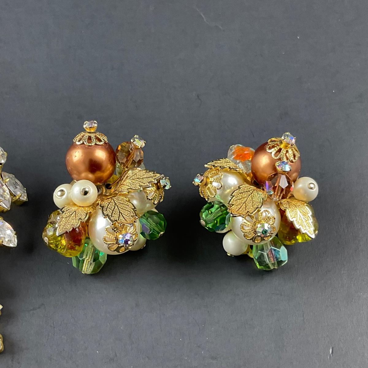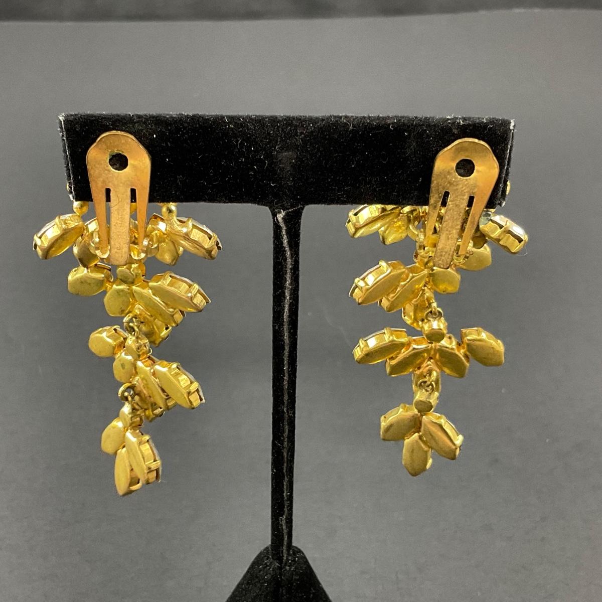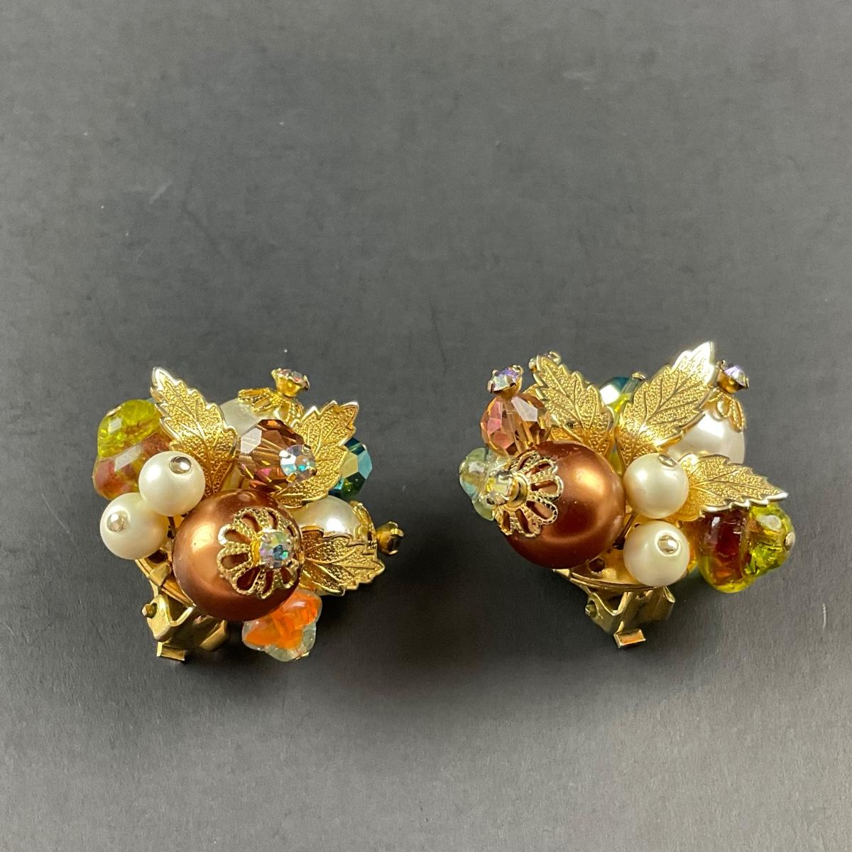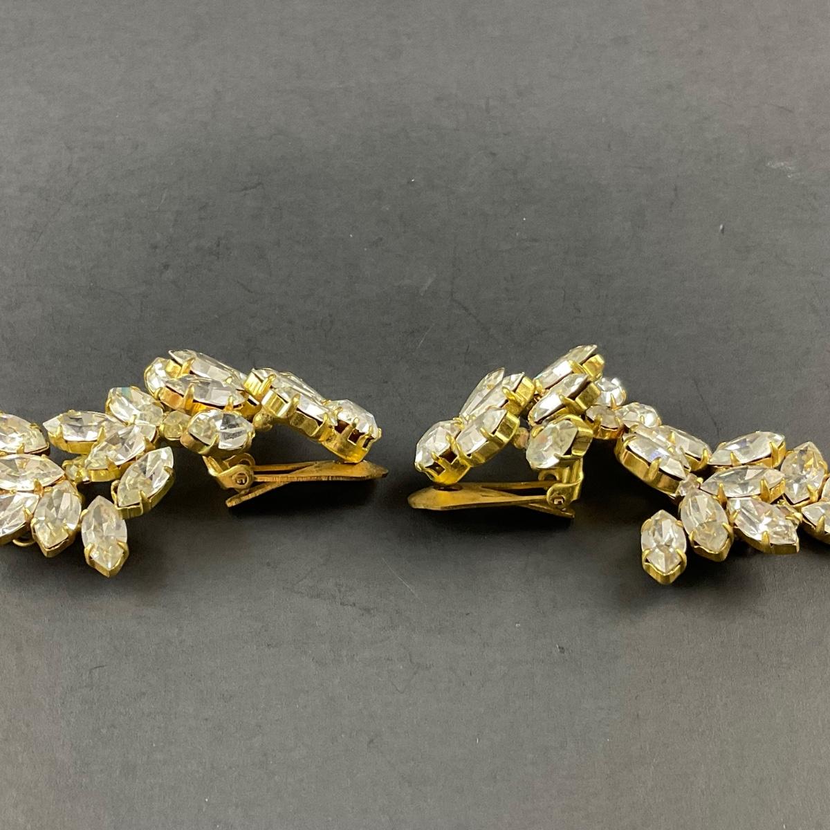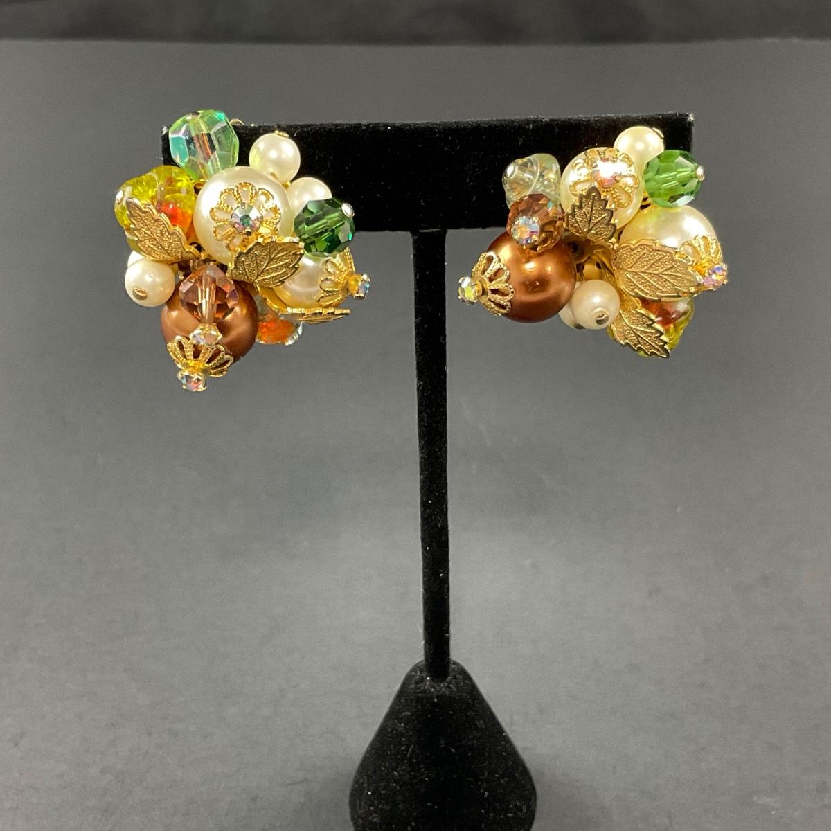 -197- ALICE CAVINESS | Clip Beaded & Rhinestone Earrings | Marked