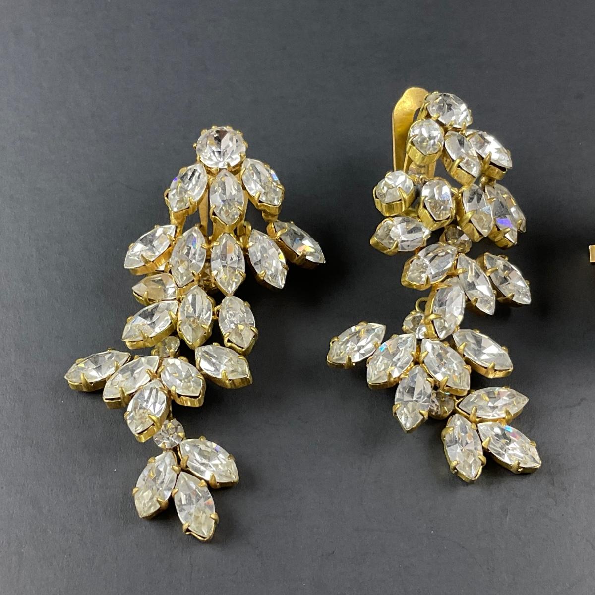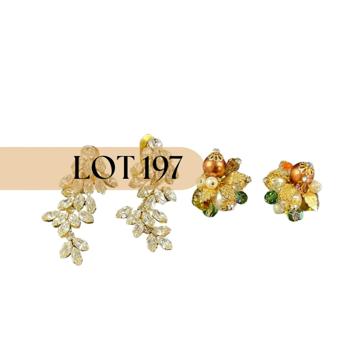 Two pairs of costume jewelry earrings. One pair of clipped earrings is marked Alice Caviness the other rhinestone clip earrings are unmarked. This piece has no damage, and appears to be in great shape with no visable chips, cracks, or broken pieces. Please see photos for details and condition. Any condition statement is given as a courtesy to a client, is an opinion, and should not be treated as a statement of fact. Reference to condition written, oral or within a condition report shall not be regarded as a full account of condition and may not include all defects, alterations, or restorations. Absence of a condition report does not imply a lot is flawless or lacking imperfections or damage. Katherine’s Auction & Appraisal Service shall have no responsibility for any error or omission. Returns shall not be accepted on the basis of condition. ::: Shipping is available on this lot. If you require shipping you must let us know at the close of the auction. We will coordinate with you after the item has been won. Shipping fees will include insurance up to or exceeding the value of all items being mailed. If you have any questions regarding this lot please contact the auctioneer either via this website, by direct email or by phone. PICK UP TIMES and other important information can be found in the TERMS and DESCRIPTION of the auction. Please take a look for pertinent information. Thanks!