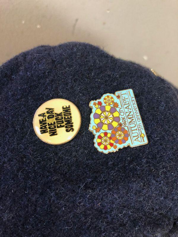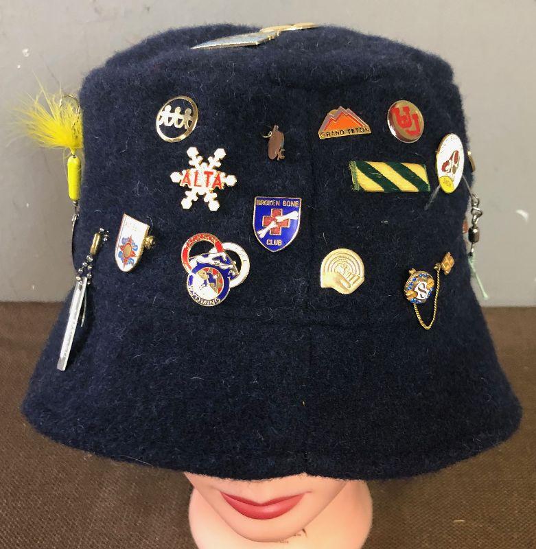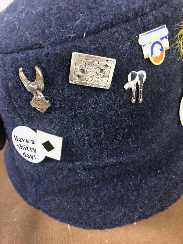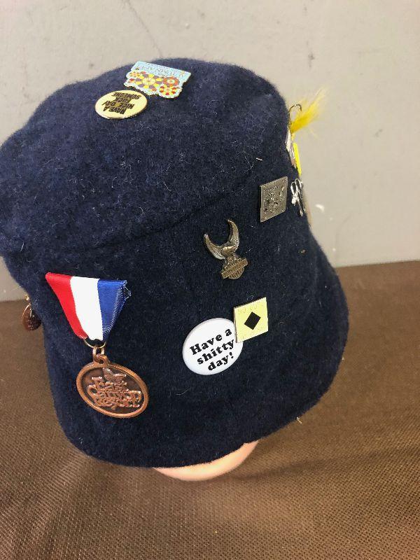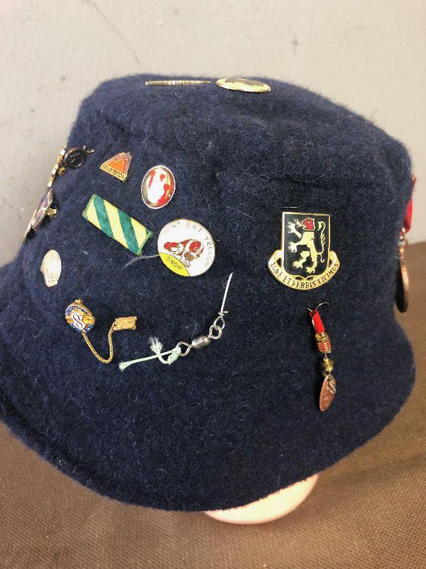 #197 Blue Wool Knit Bucket Hat with MANY Collectible Pins!