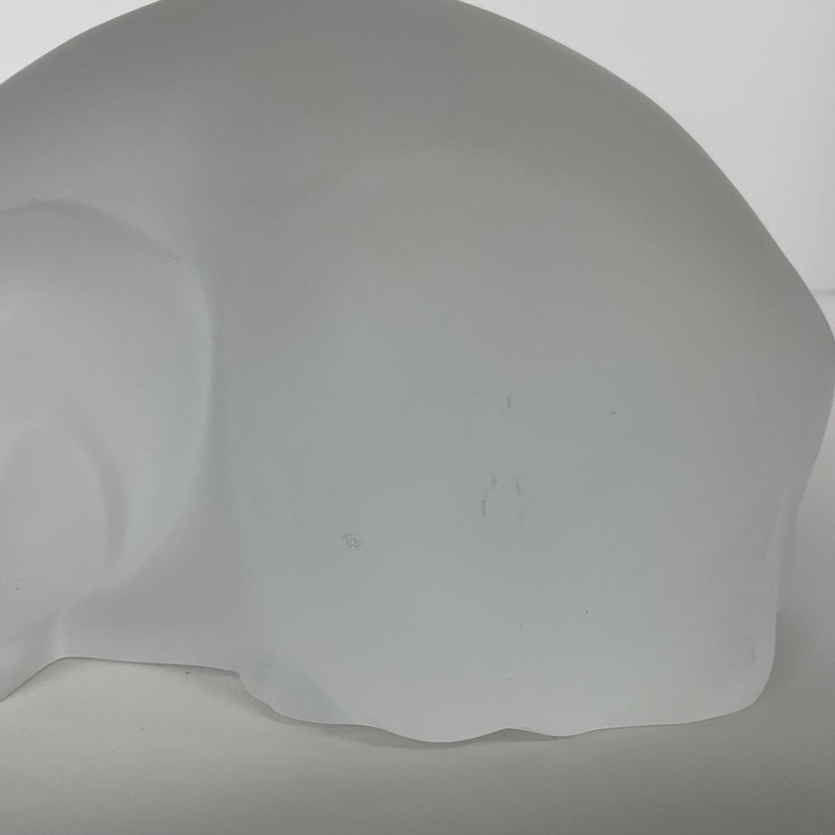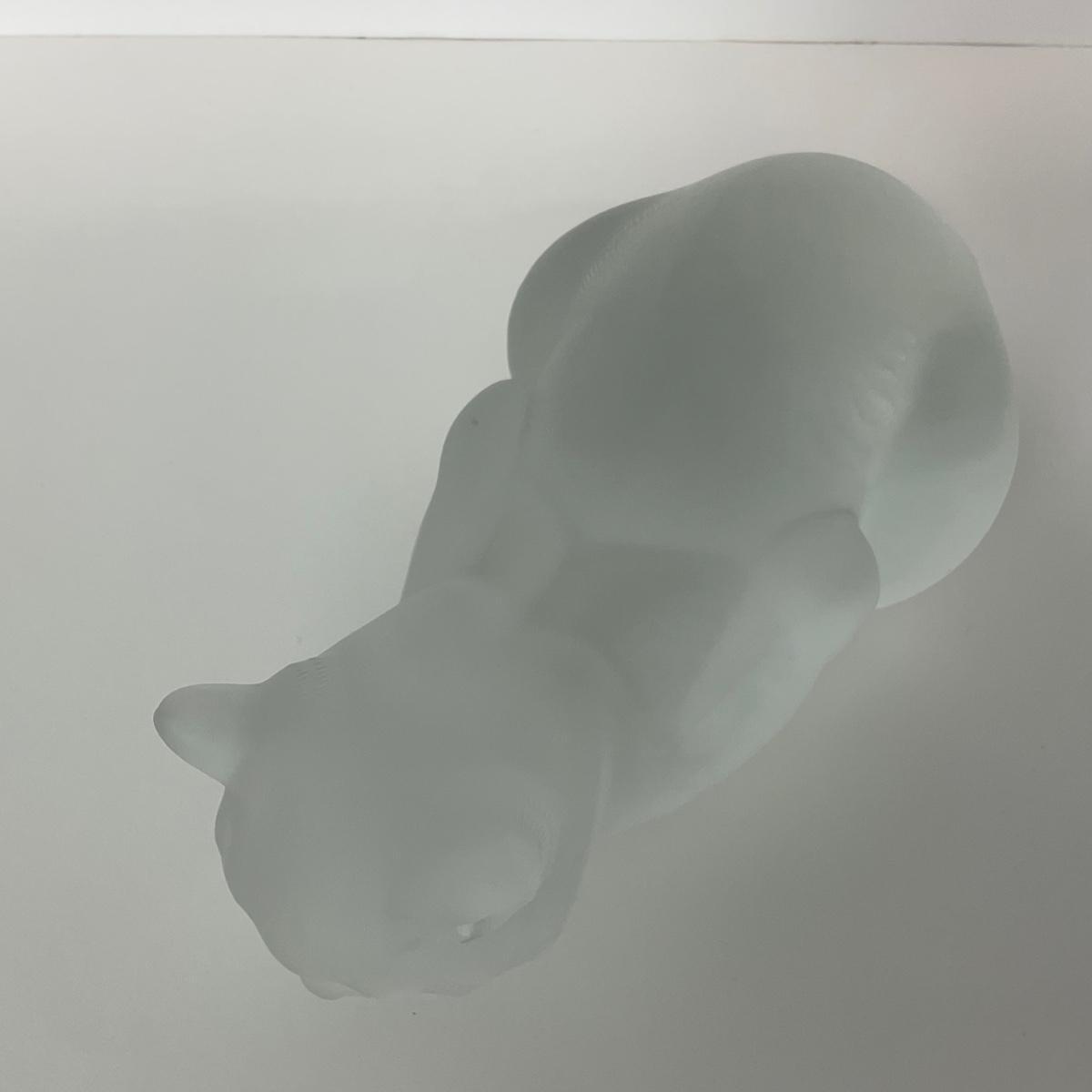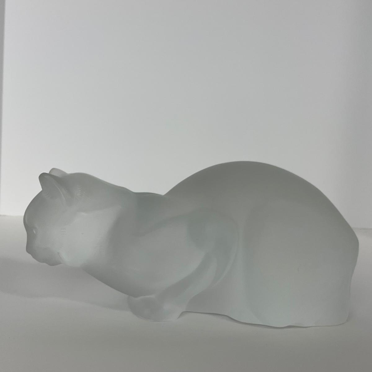 One vintage Lalique France Frosted heavy crouching cat. Piece is signed at the bottom, this piece does have a small flea bite chip on the side of the cats body as well as a small chip on the ear and a scuff. Please see photos for details and condition. Any condition statement is given as a courtesy to a client, is an opinion, and should not be treated as a statement of fact. Reference to condition written, oral or within a condition report shall not be regarded as a full account of condition and may not include all defects, alterations, or restorations. Absence of a condition report does not imply a lot is flawless or lacking imperfections or damage. Katherine’s Auction & Appraisal Service shall have no responsibility for any error or omission. Returns shall not be accepted on the basis of condition. ::: Shipping is available on this lot. If you require shipping you must let us know at the close of the auction. We will coordinate with you after the item has been won. Shipping fees will include insurance up to or exceeding the value of all items being mailed. If you have any questions regarding this lot please contact the auctioneer either via this website, by direct email or by phone. PICK UP TIMES and other important information can be found in the TERMS and DESCRIPTION of the auction. Please take a look for pertinent information. Thanks!
