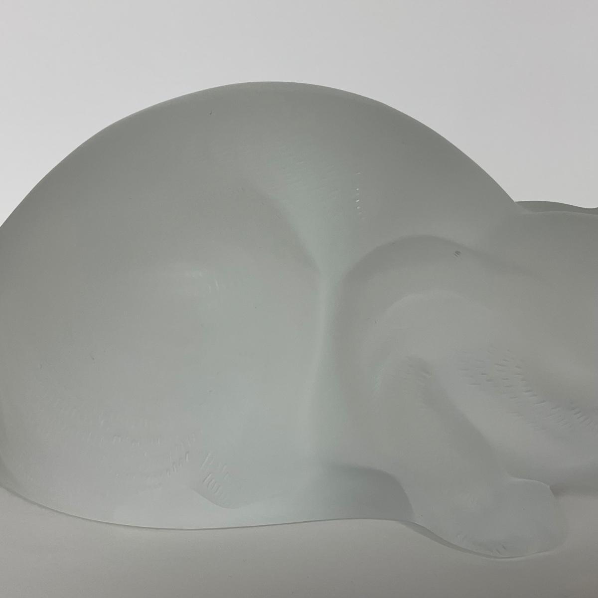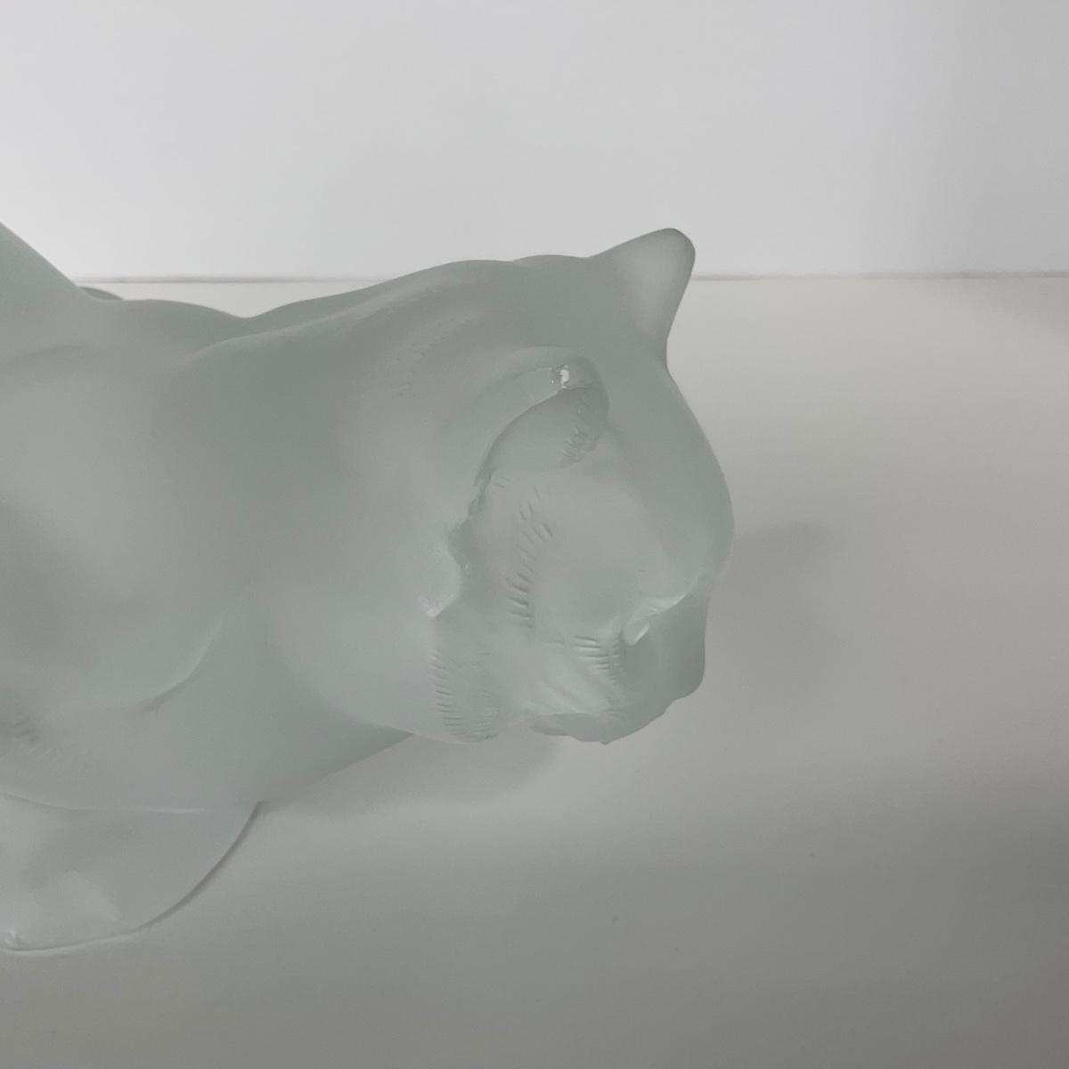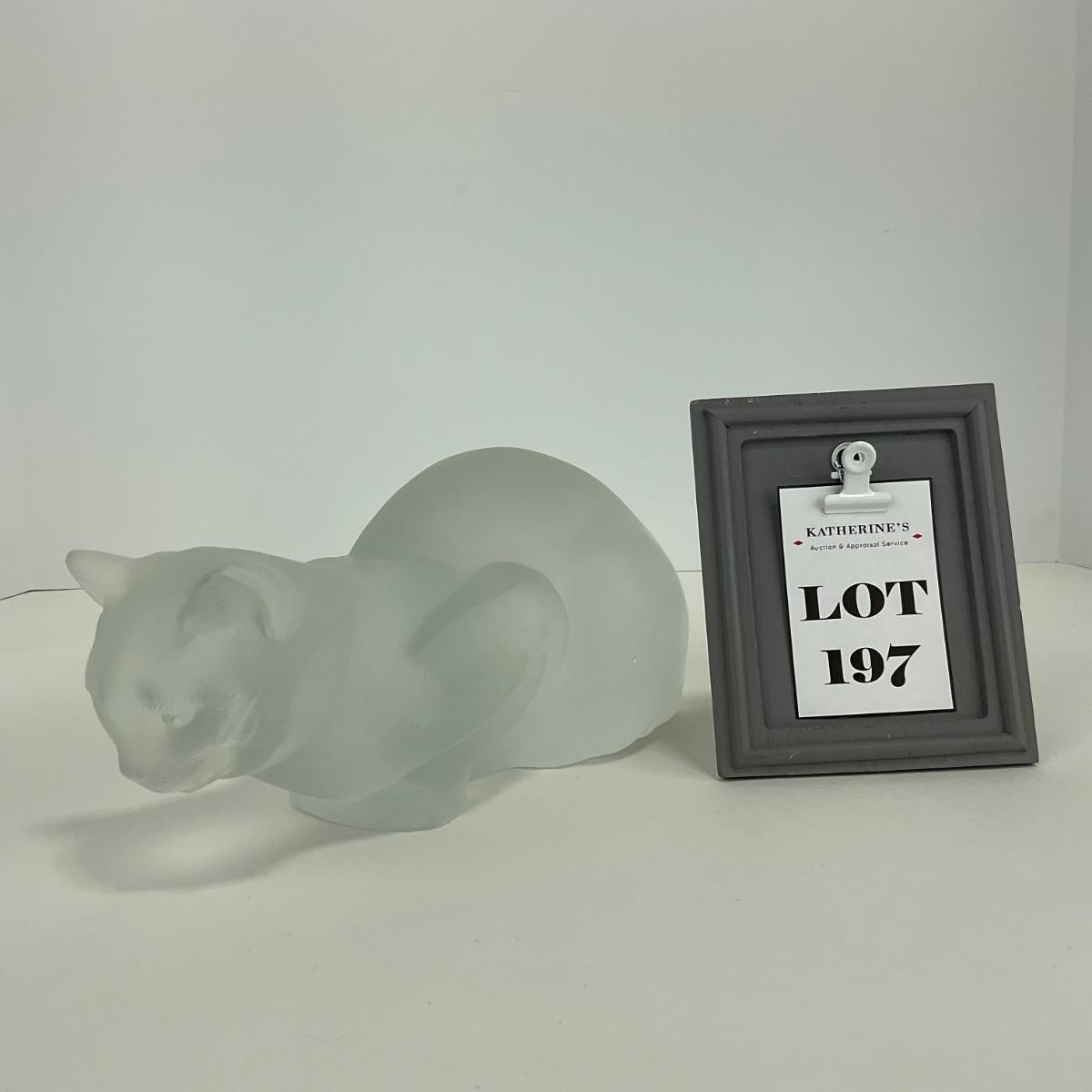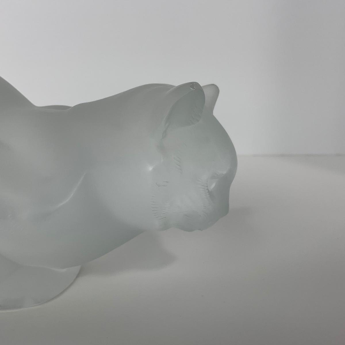 -197- LALIQUE | France Frosted Heavy Crouching Cat | Signed