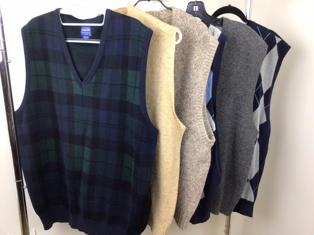 There are 6 sweater vests in the lot, all are size XL and range in brands from Pendleton, IZOD and more.