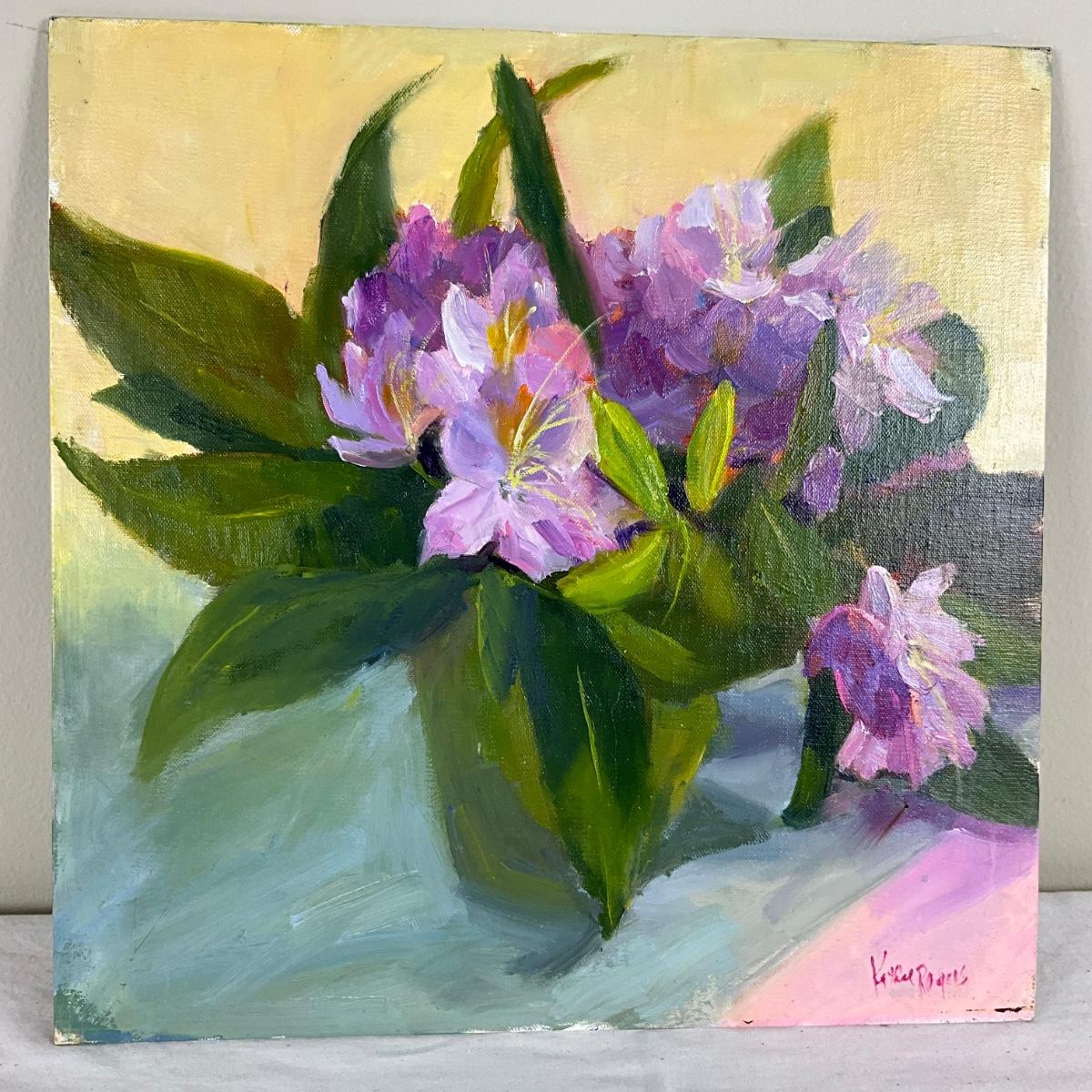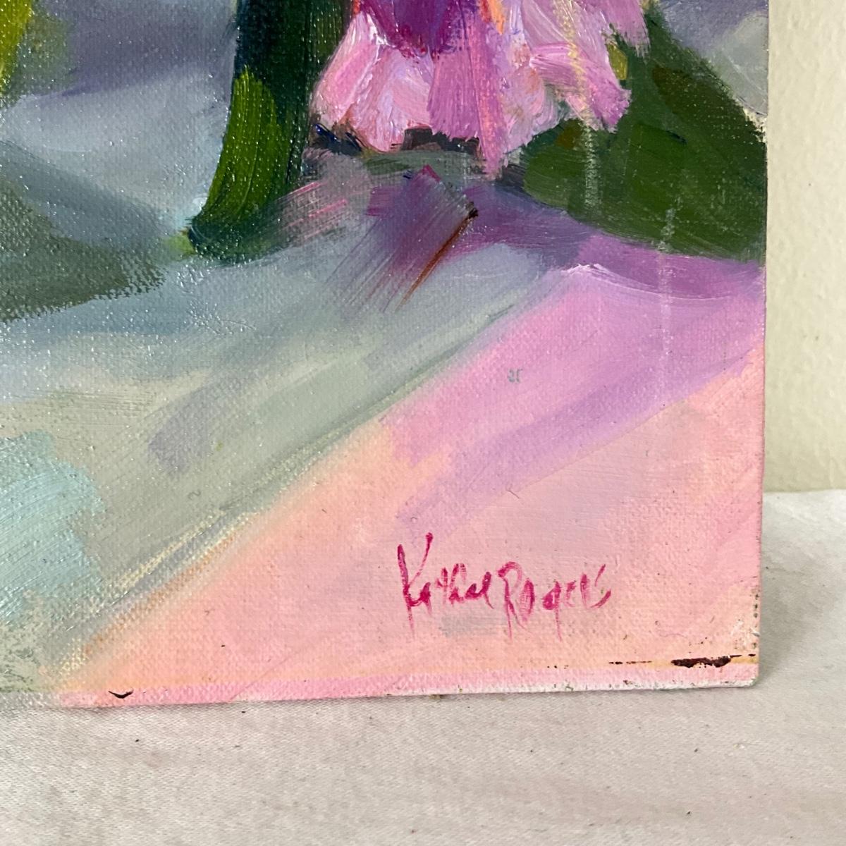 197 Original Oil Painting "Potted Purple Flowers" by Kathie Rogers
