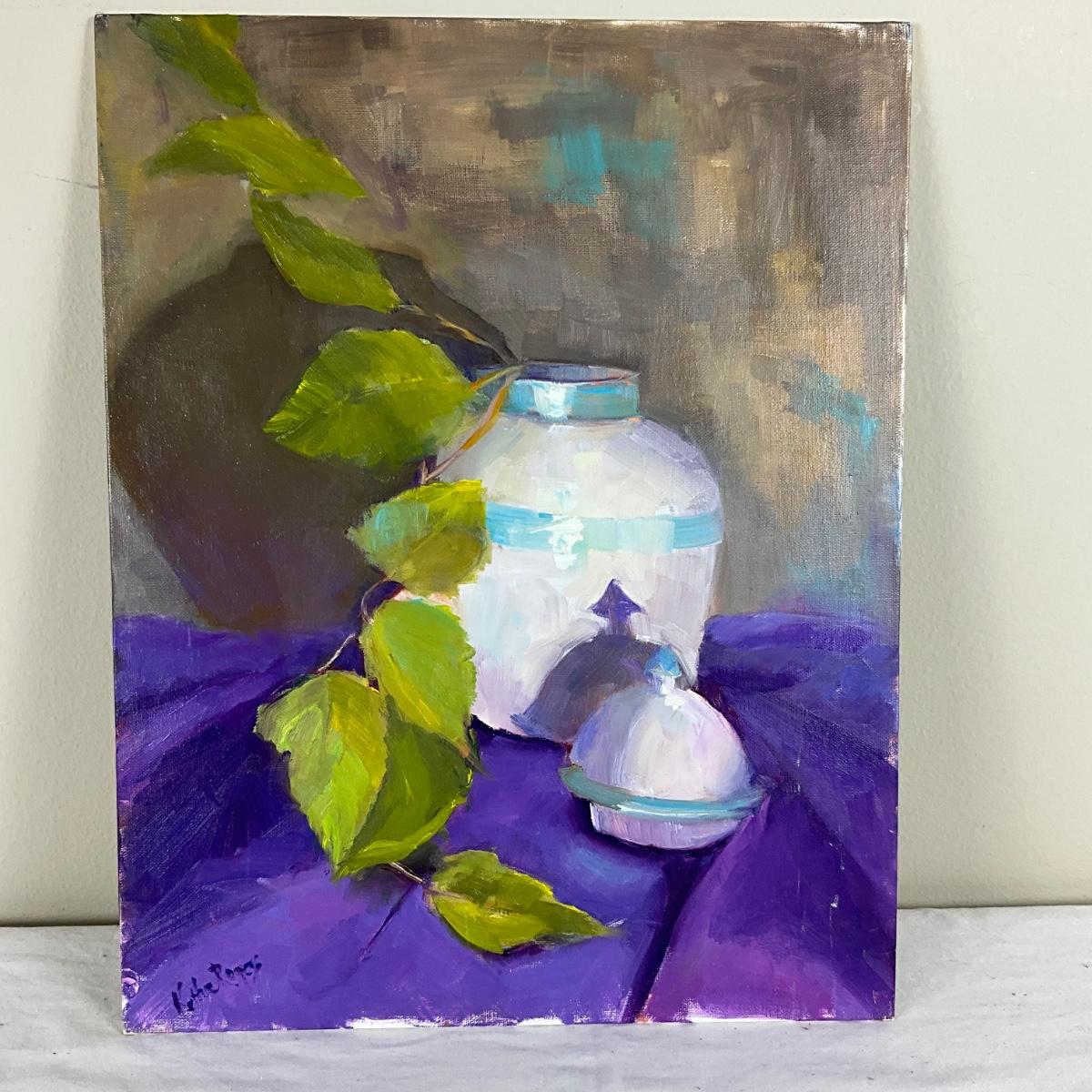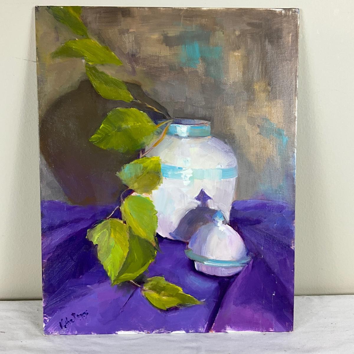 198 Original Oil Painting Still Life of Blue and White Urn by Kathie Rogers
