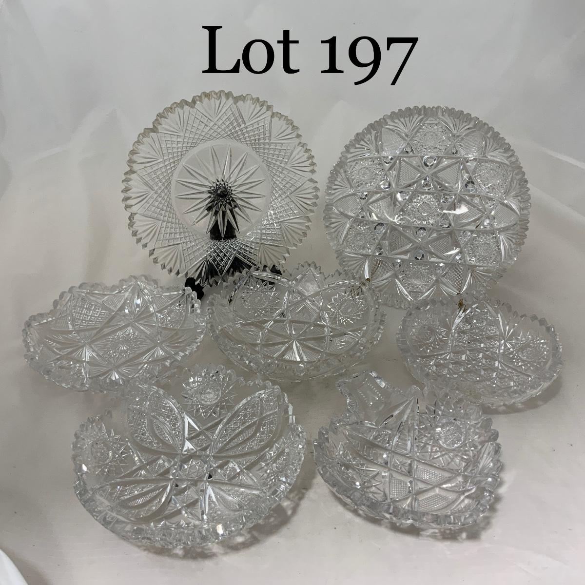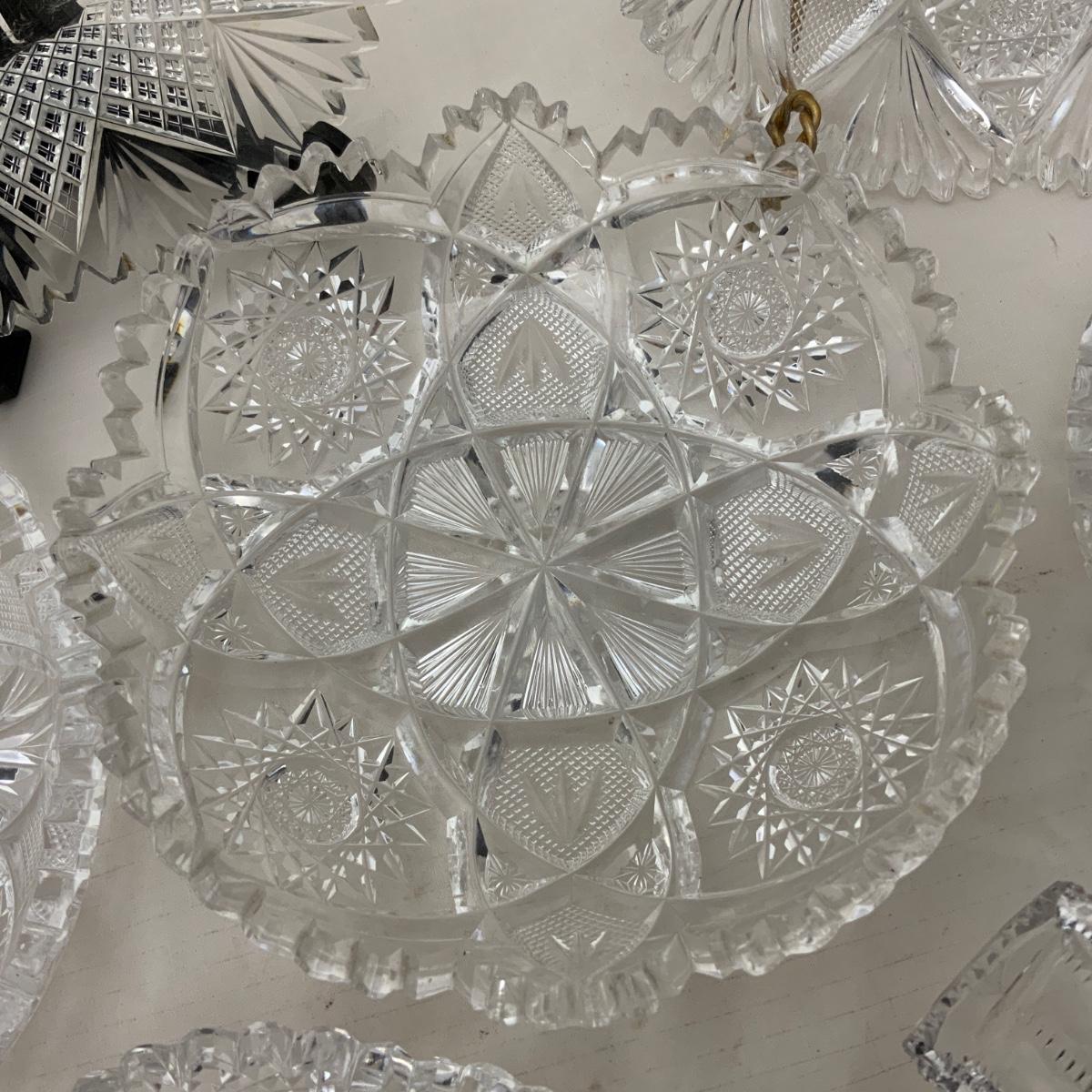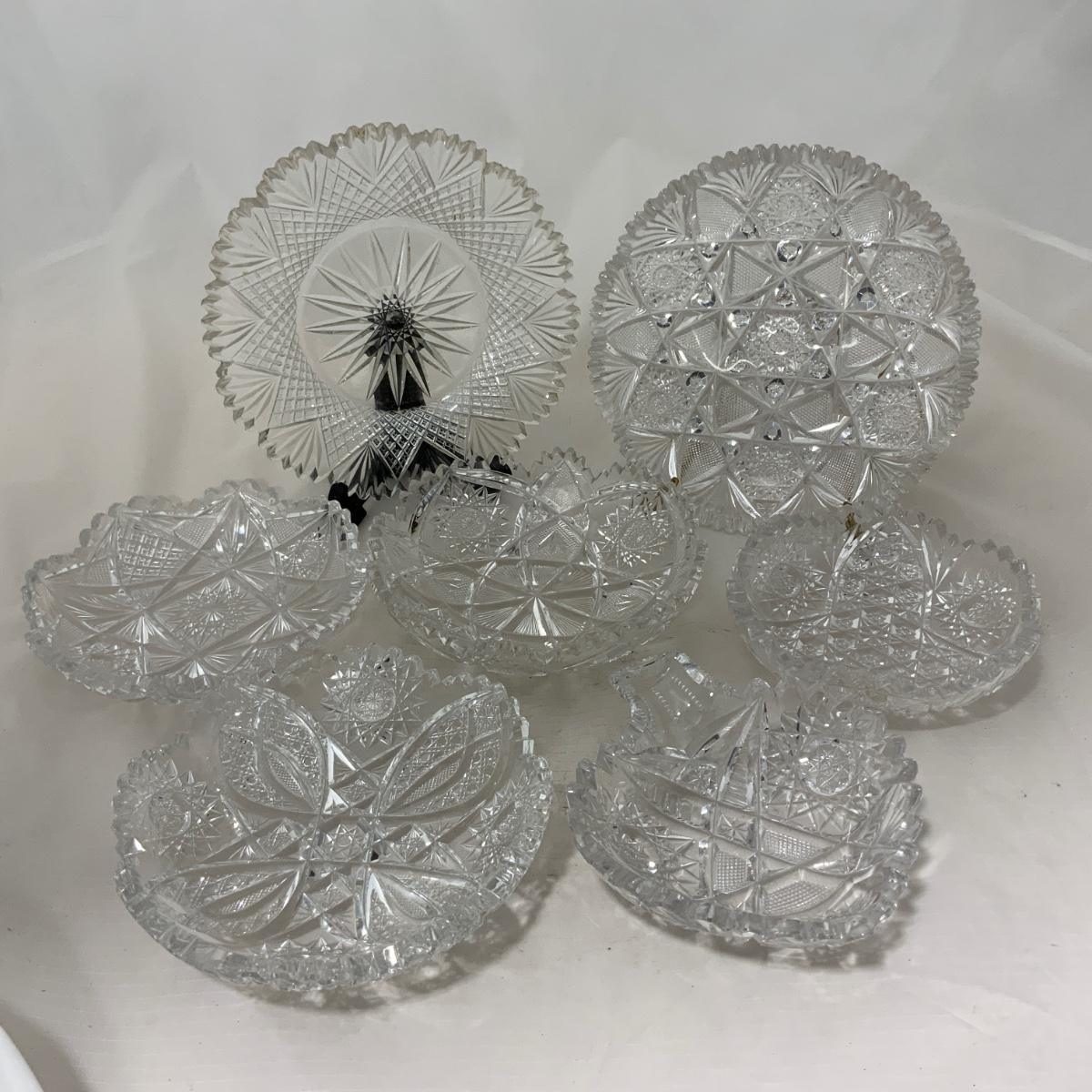 A great collection of Cut Glass Dishes. Perfect for serving at home or putting together a party or bridal shower. Show some class by using cut glass. Please see photos for details and condition. ::: Shipping is NOT available on this lot. If you have any questions regarding this lot please contact the auctioneer either via this website, by direct email or by phone. PICK UP TIMES and other important information can be found in the TERMS and DESCRIPTION of the auction. Please take a look for pertinent information. Thanks!