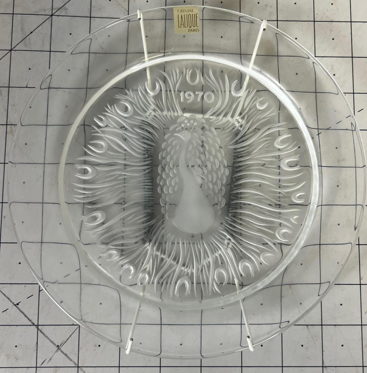 1970 Lalique Crystal Plate of Peacock