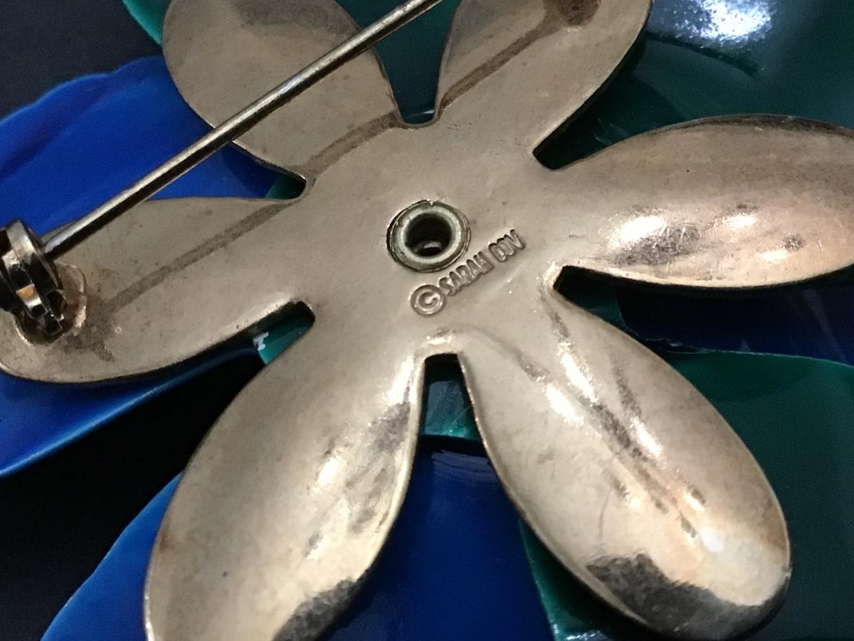 1970 Sarah Coventry Tahitian Flower Brooch Blue Enamel