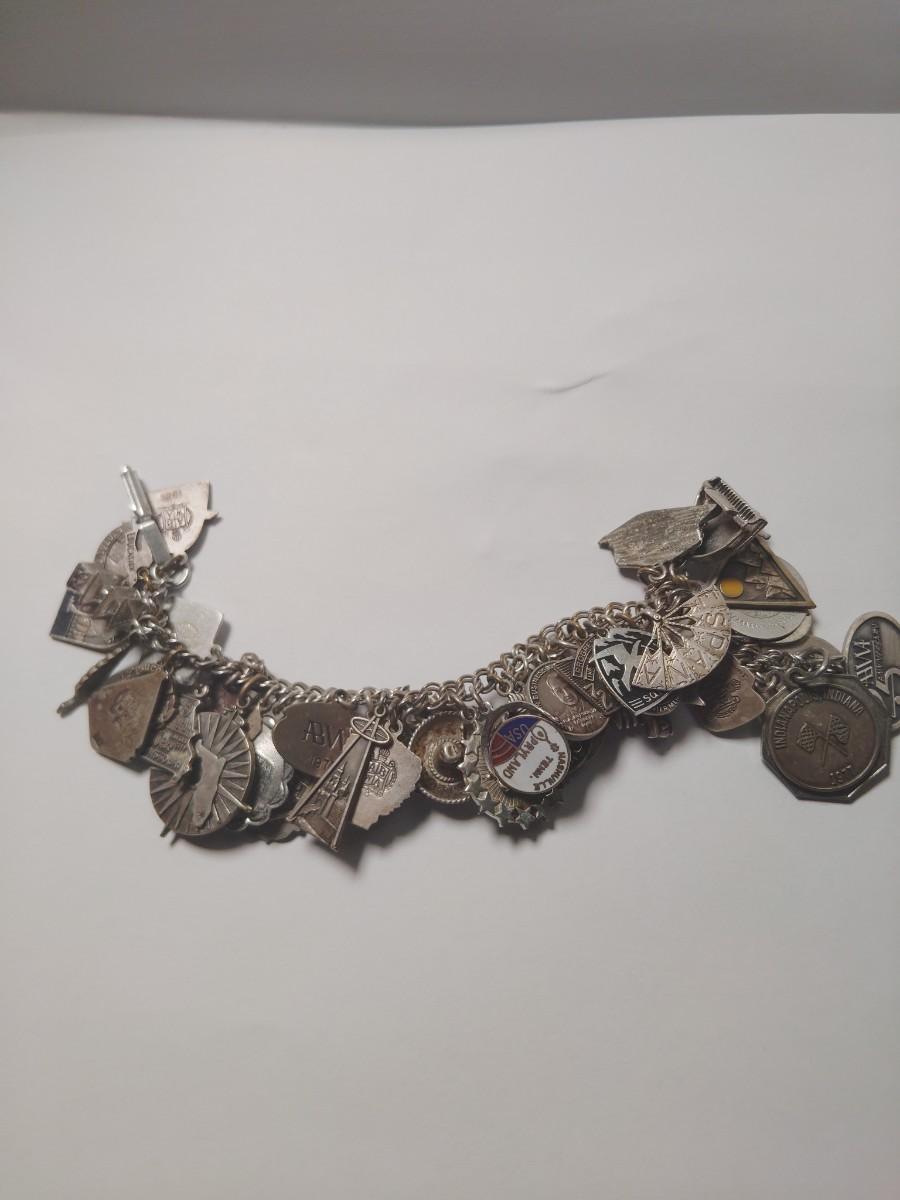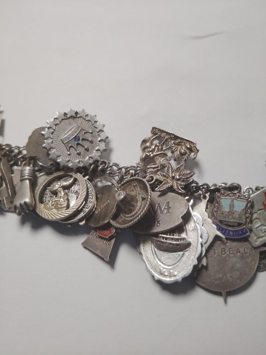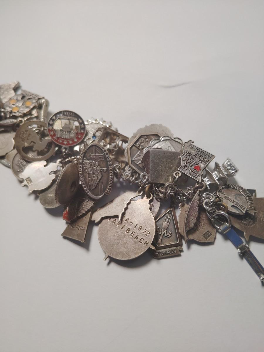 1970 Vintage Sterling Silver Around the World Charm Bracelet 45 Charms 118.8 G