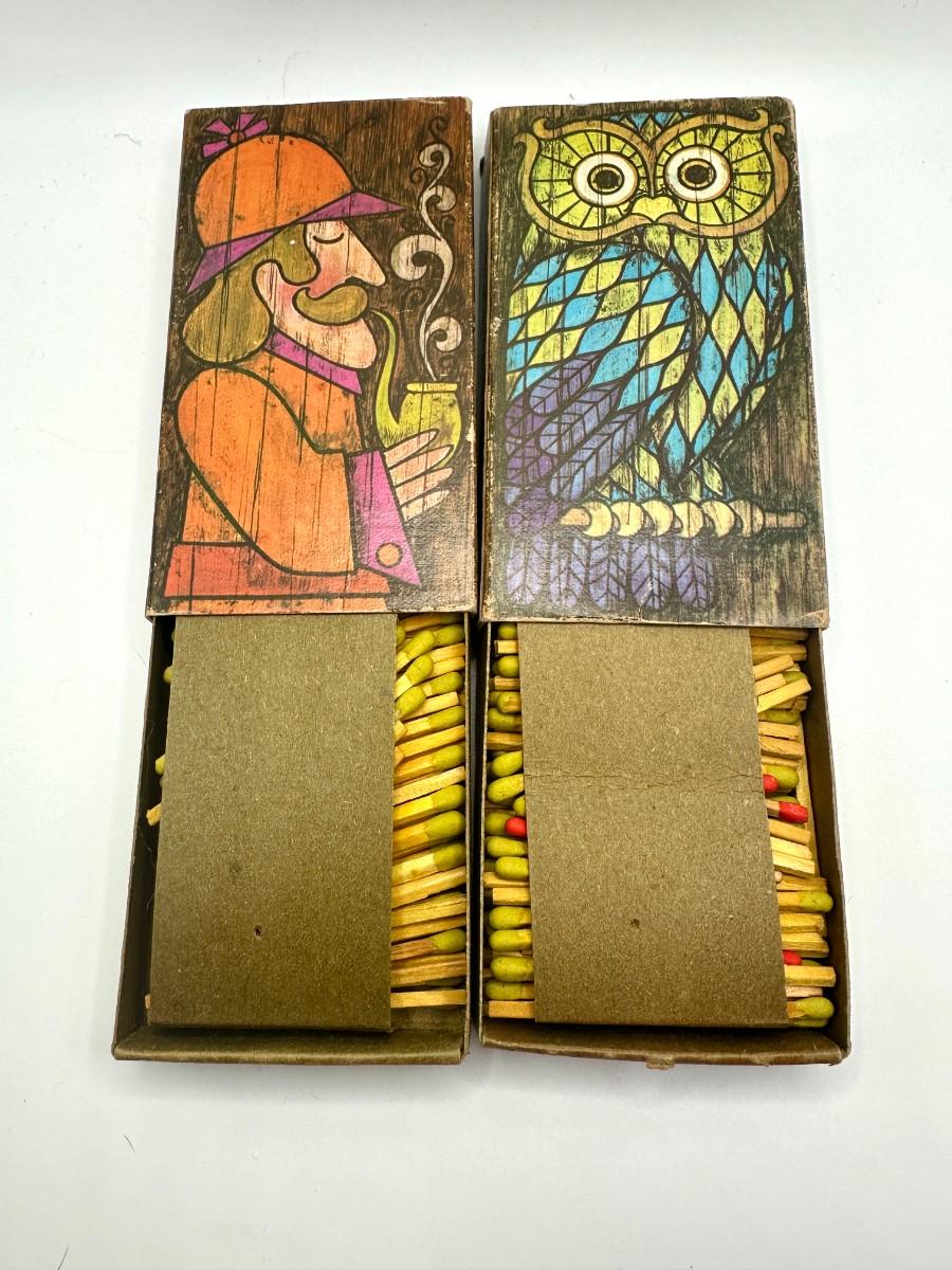 1970's Owl & Mushroom & Sherlock Match Boxes from The Ohio Match Company