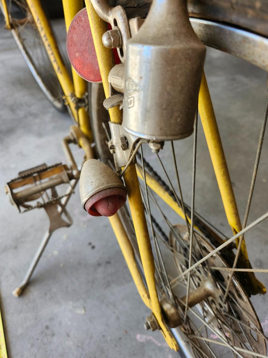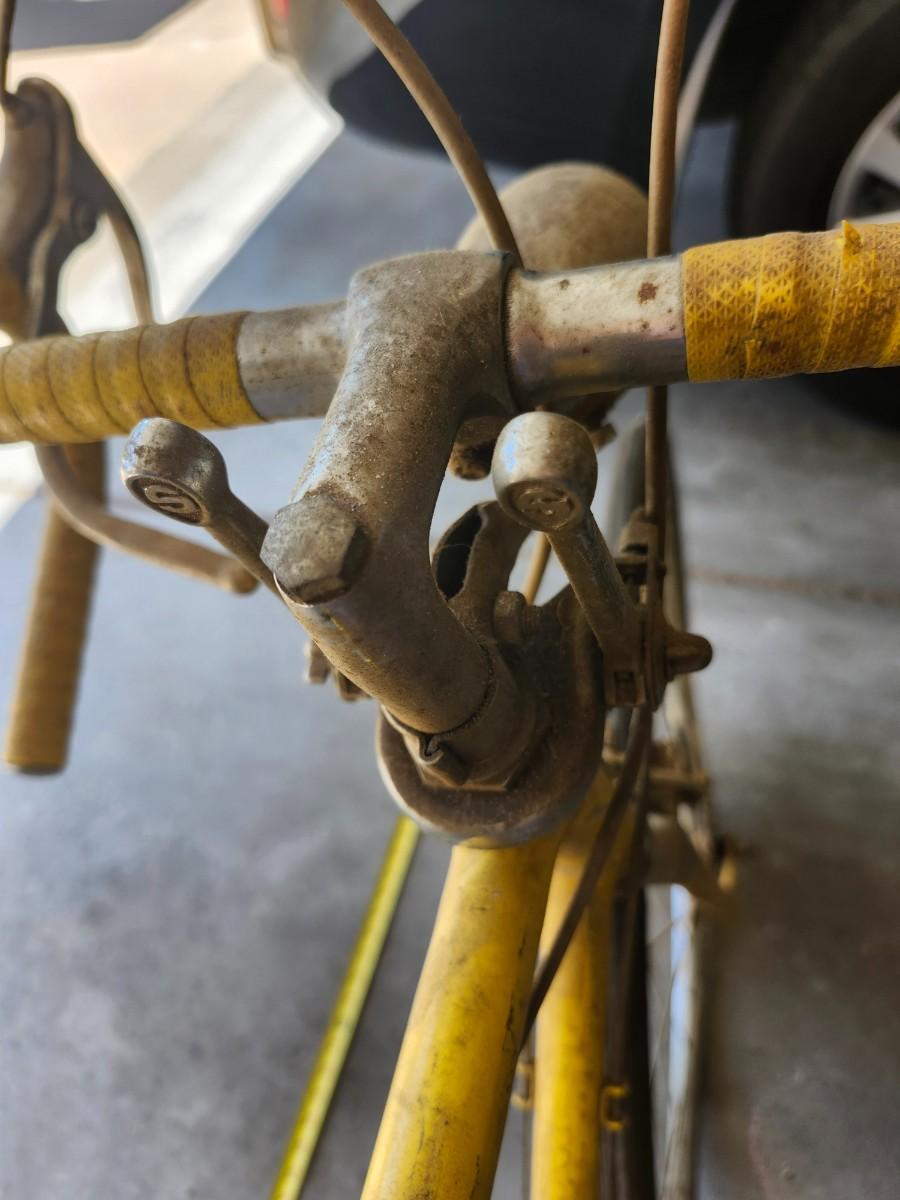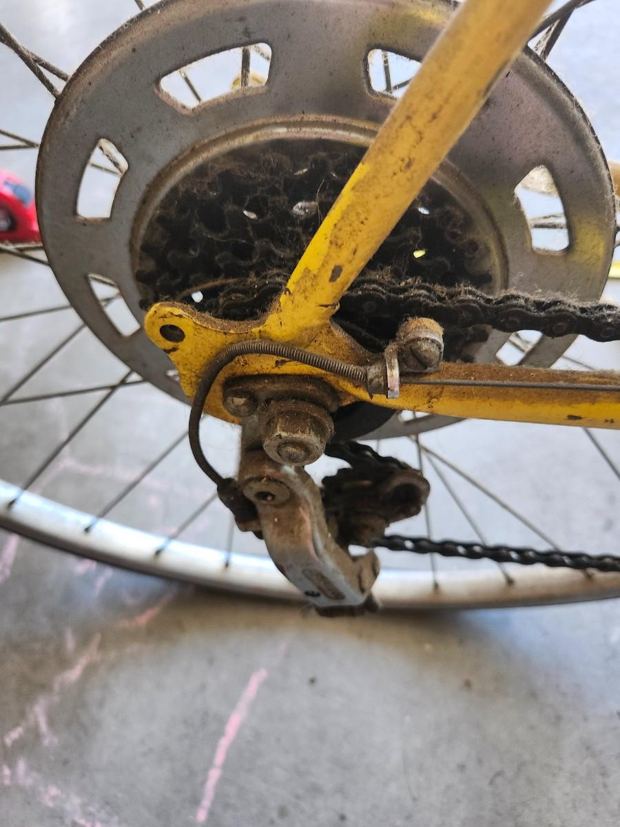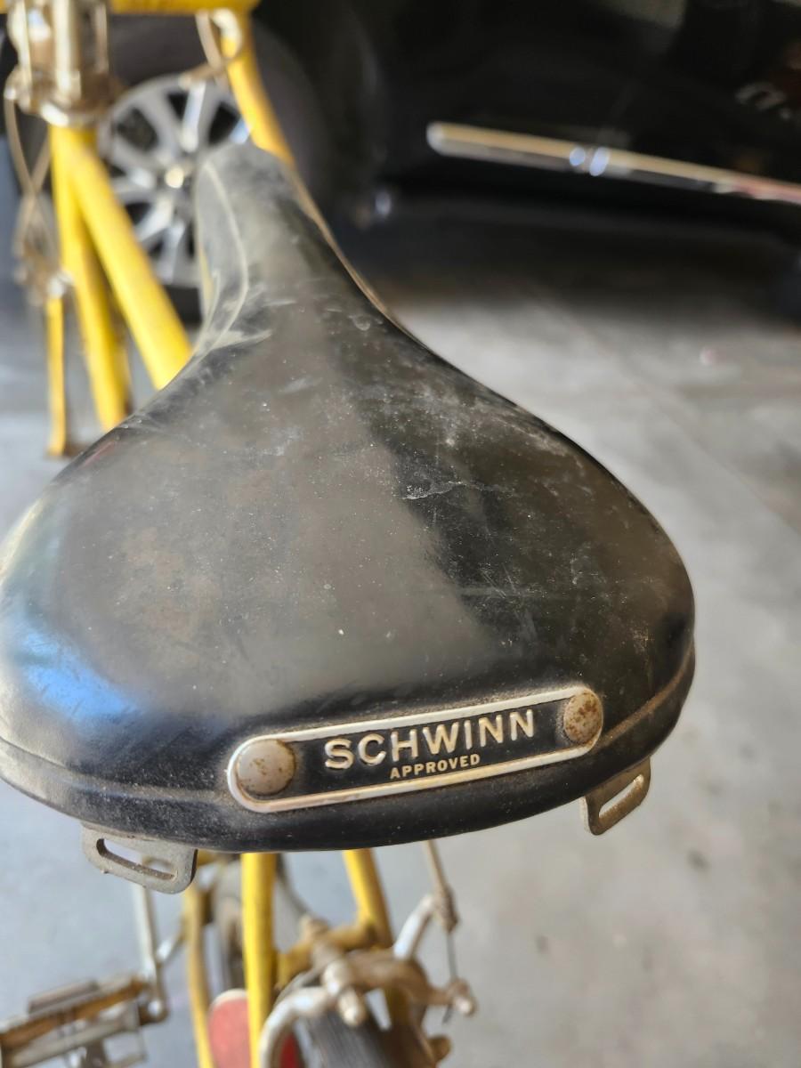 Schwinn Varsity 10 speed bike. The top tube is 26.5 from the ground on flat tires. This bike has been stored well and doesn't have the usual rust on all the parts. The tires do not hold air, and the cables are loose. The bike is all original