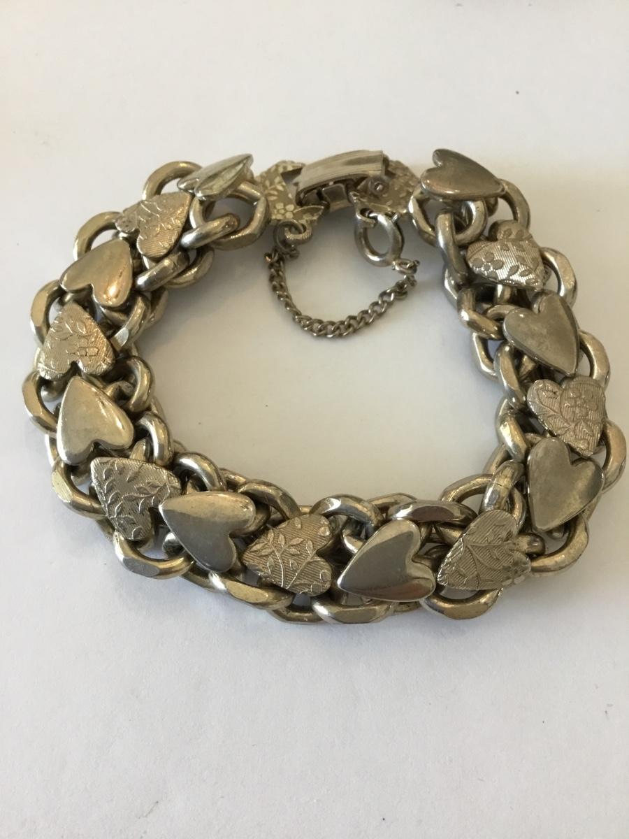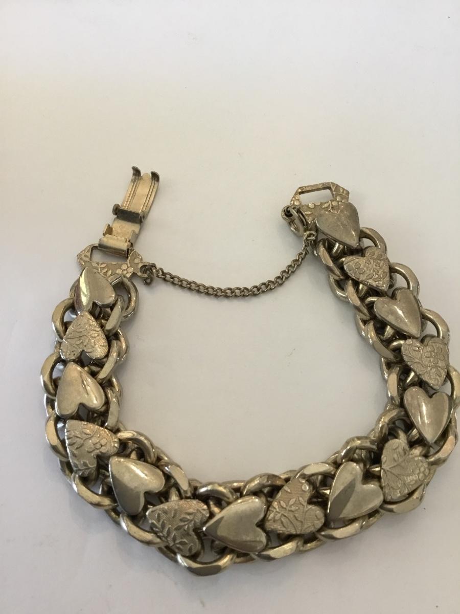 1970s vintage gold chunky double chain heart leaf woodland, elf fantasy, big heavy Boho Bohemian large wide chain link bracelet