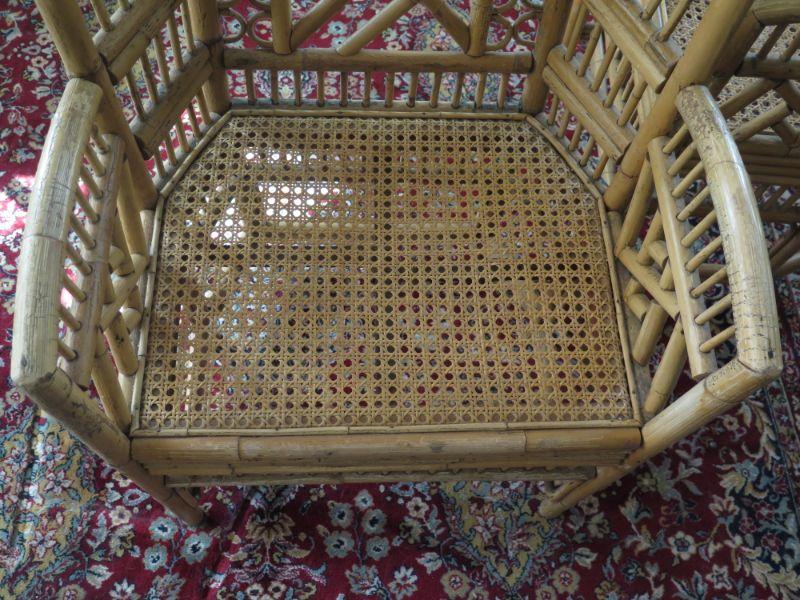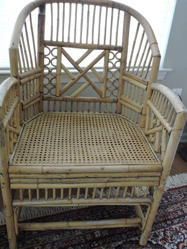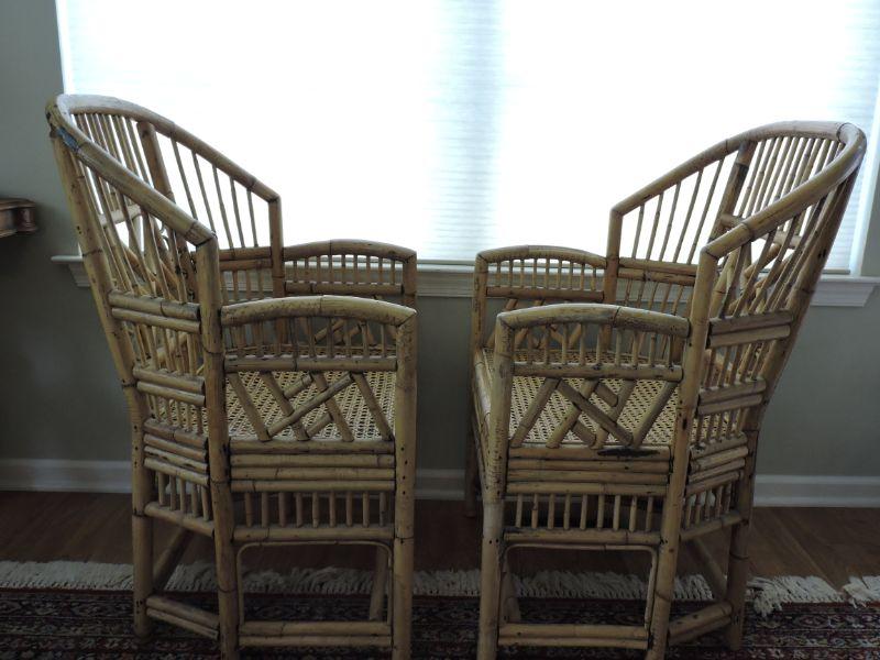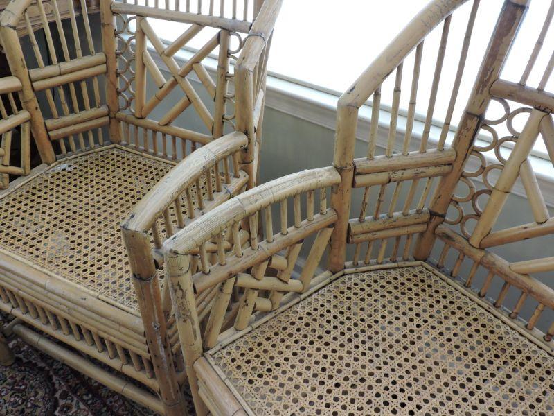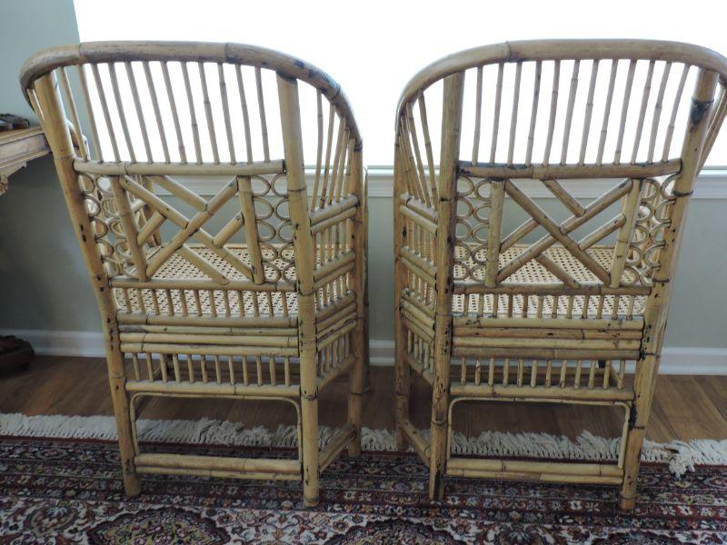 Beautiful set of 1970s Vintage Rattan Bamboo Brighton Style Chairs. **Please read Terms and Conditions before placing a bid. Pick up is Sunday, September 1, 2019 from 10am to 4pm in Williamstown. All sales are final. All sales are as is, where is. Please review all photos. Any props included in photos are not included in listing. All measurements are approximate. Comes from home with cats.