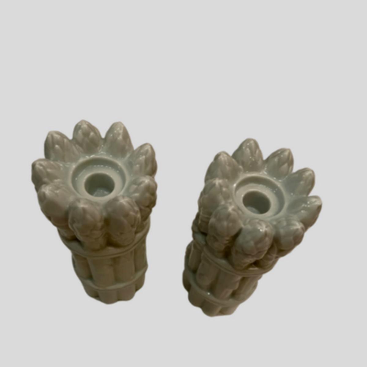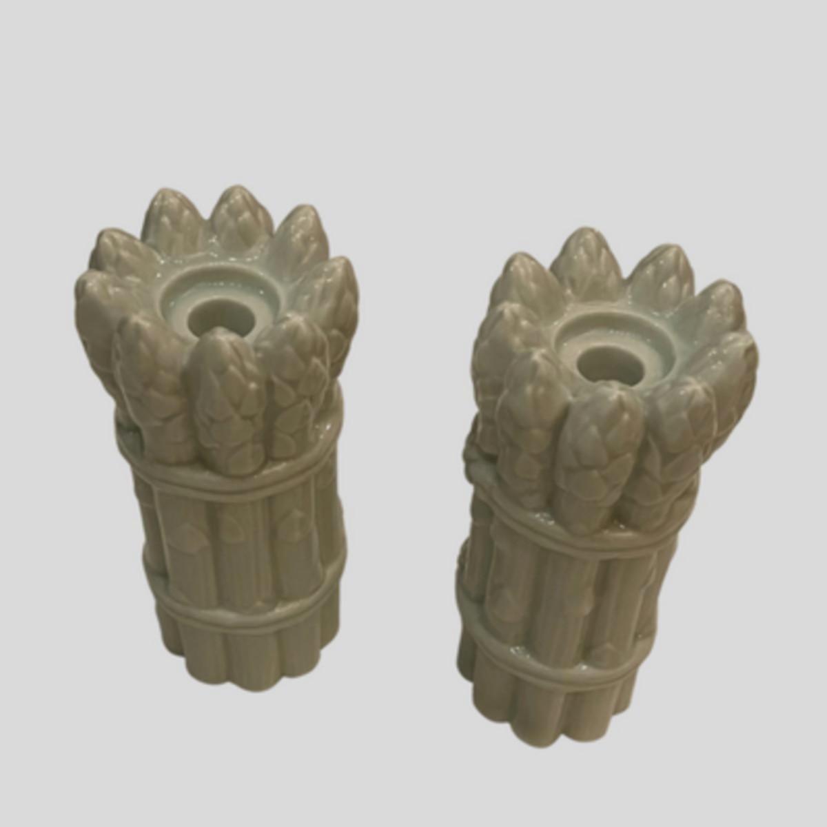 These are two asparagus candle holders measuring 8 x 4. Perfect for the kitchen.