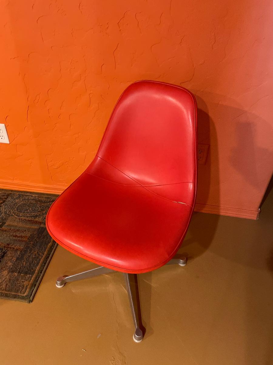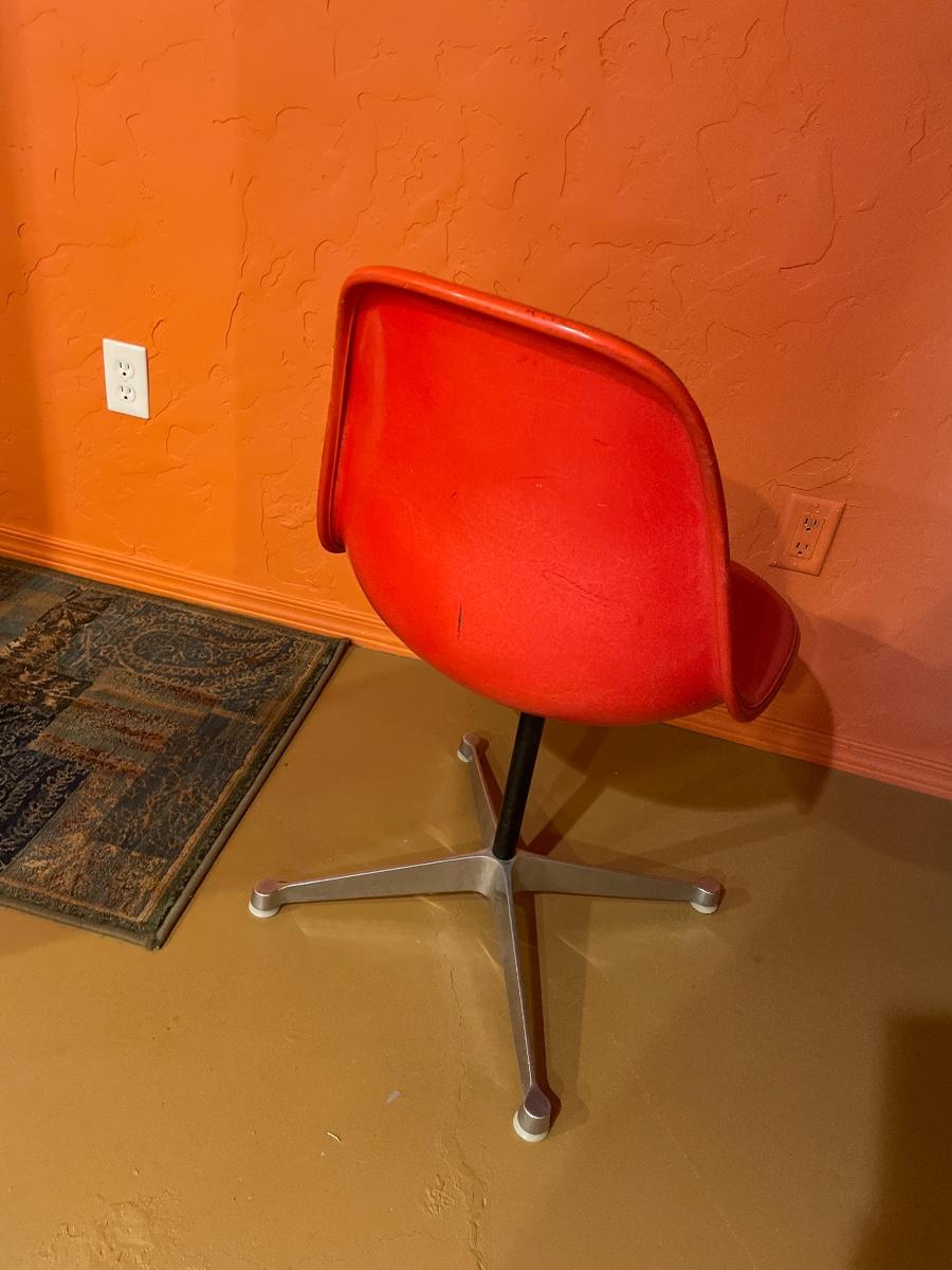 #328 1971 Classic HERMAN MILLER Red Padded Shell Chair on Swiveling Base