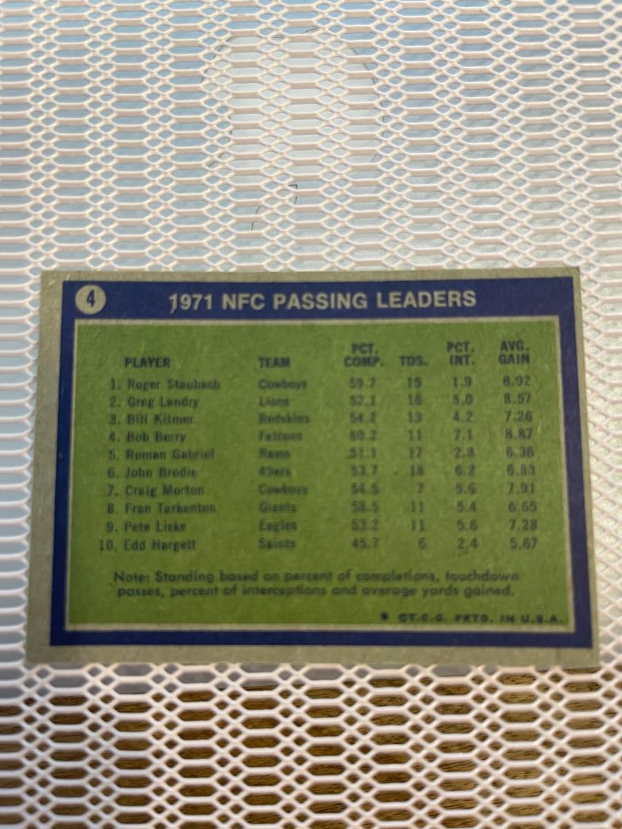 1971 Ct.C.G NFC passing leaders - Staubach / Landry / Kilmer