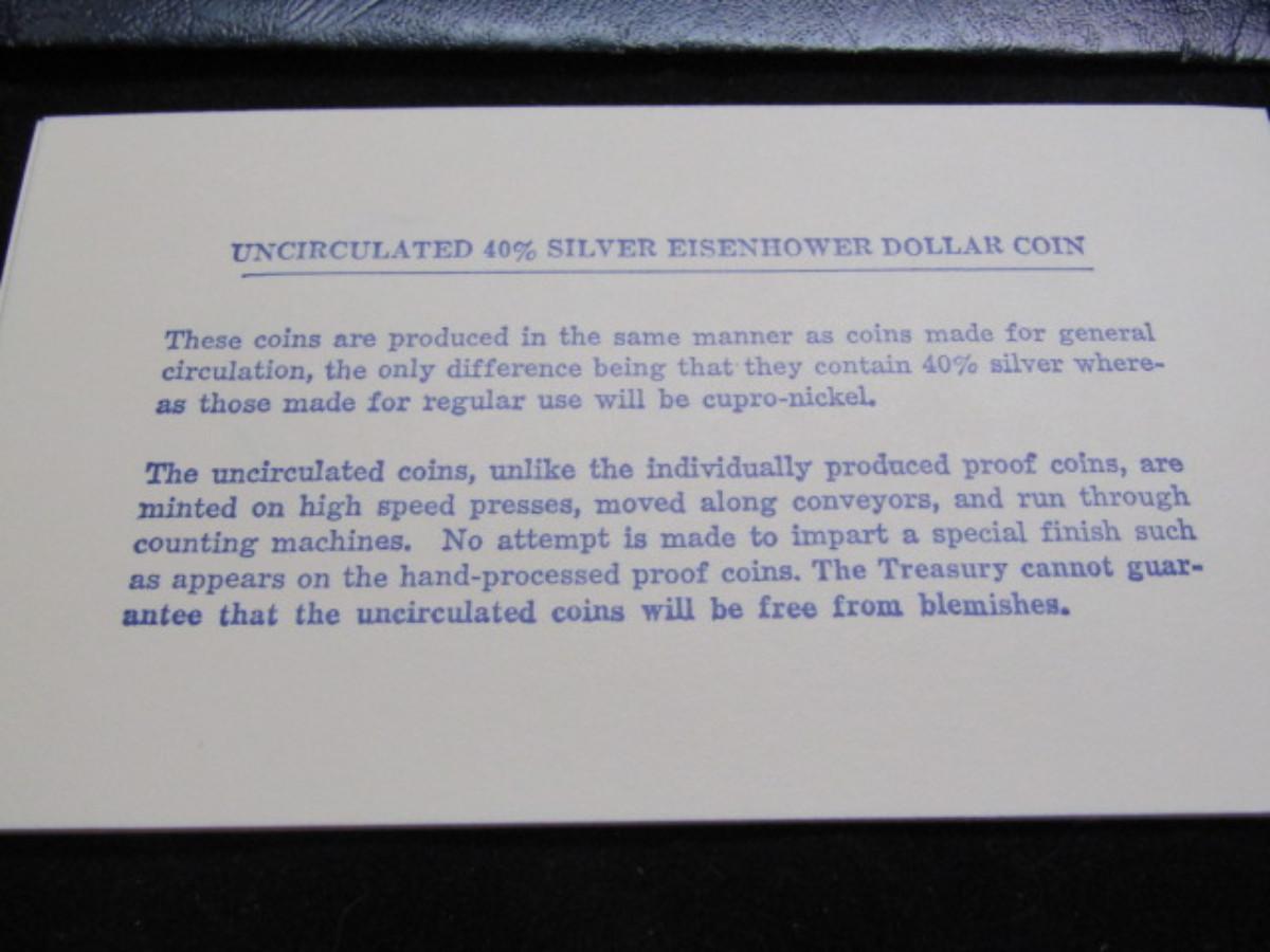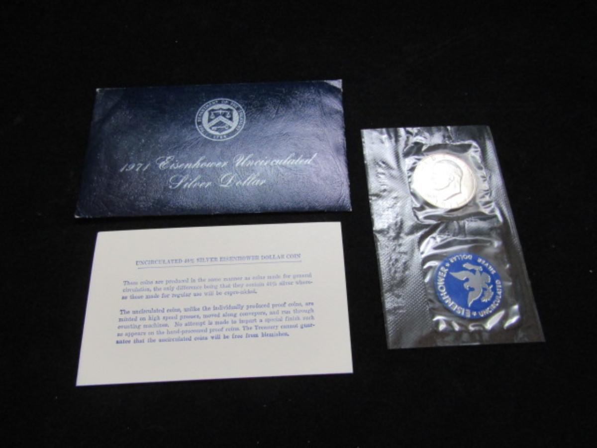 1971 Eisenhower Uncirculated Silver Dollar (C). 40% silver content.