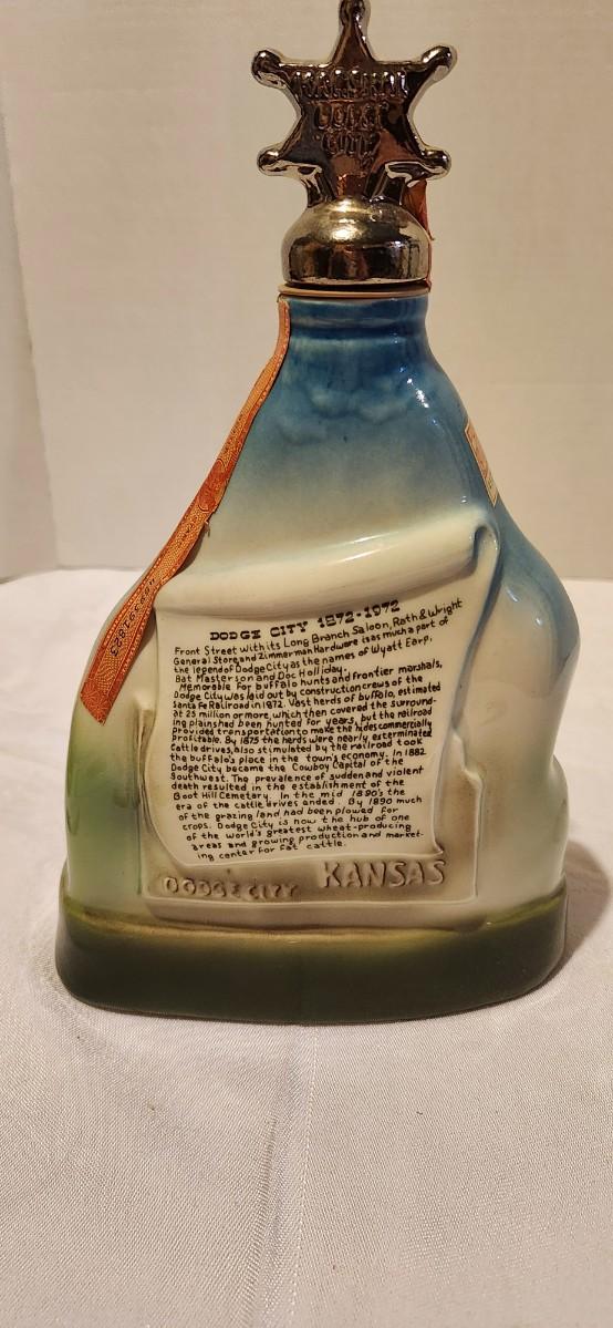 1972 Jim Beam Whiskey Boot Hill, Dodge City, Kansas Centennial Decanter Bottle