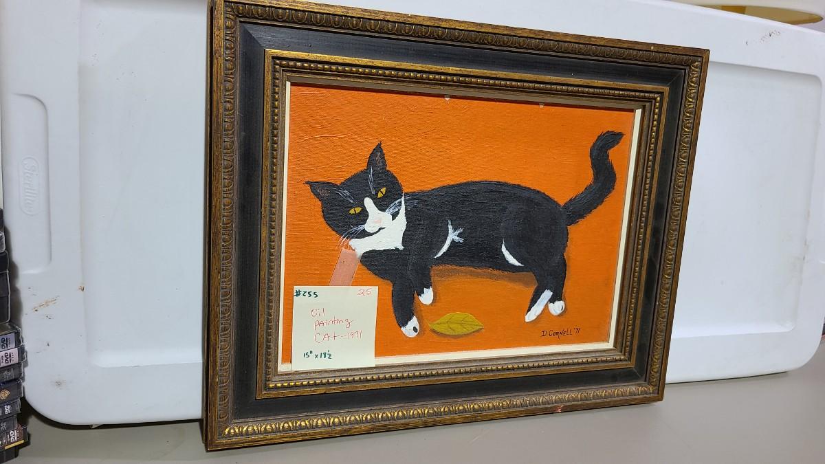 1971 Oil Painting Black and White Cat 15" x 18½" -Item #255