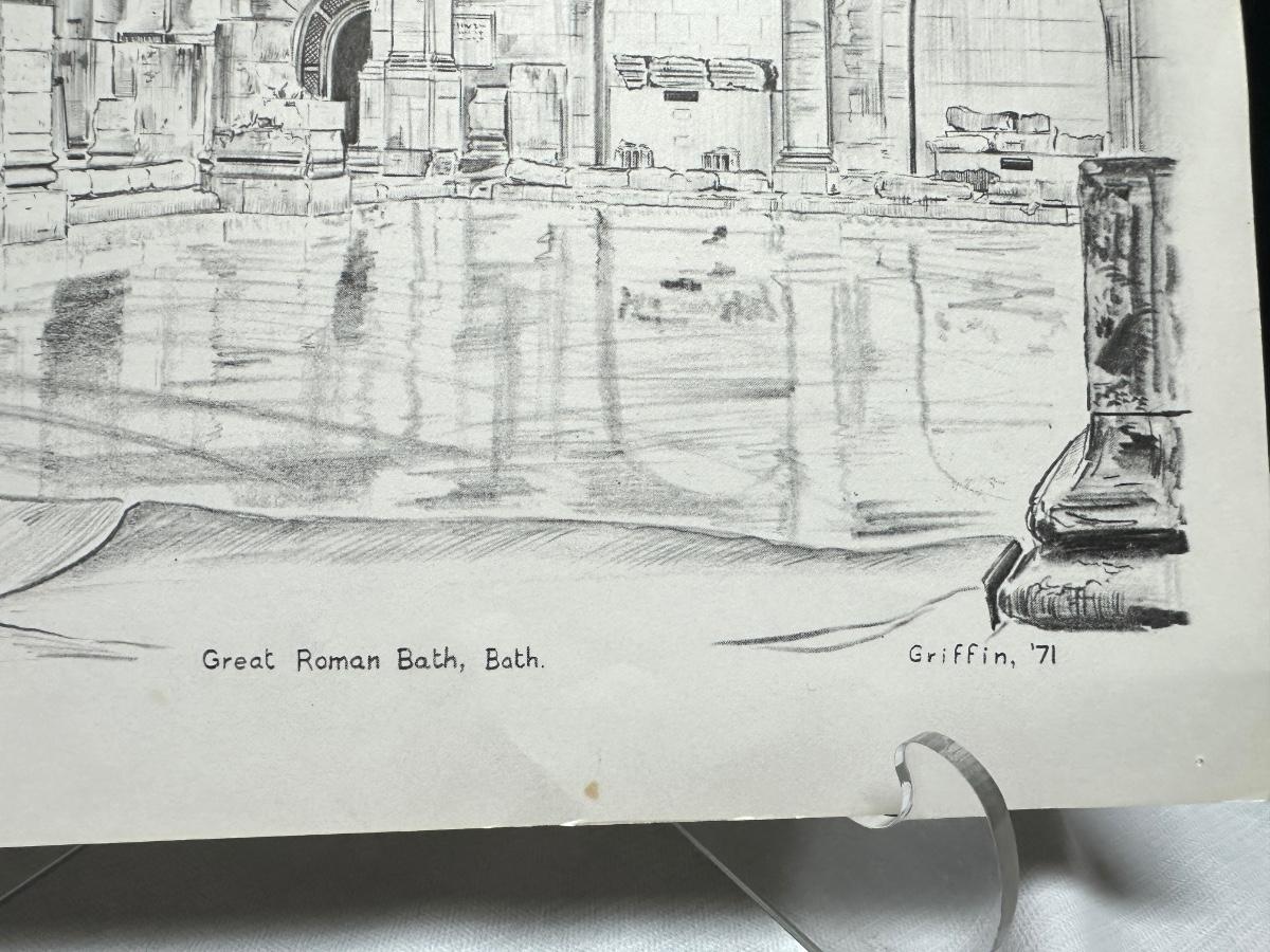 Artist named Griffin. Note pinholes from being hung by tacks and some wrinkling. Condition is fair overall to good on the actual picture. See photos.