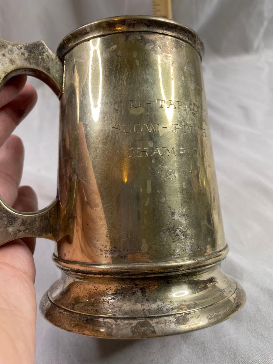 This stein was given as an award and inscribed U-Tapao Slow-Pitch Champion 1971. I didn&#39;t see any dings or significant issues. U-Tapao is part of the Phillipines.<br />