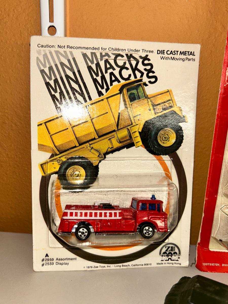 1971 TOOTSIE TOYS IN ORIGINAL PACKAGE, ALONG WITH 1976 MINI MACK AND WINDRACER & TOOTSIE TOY ARMY TANK