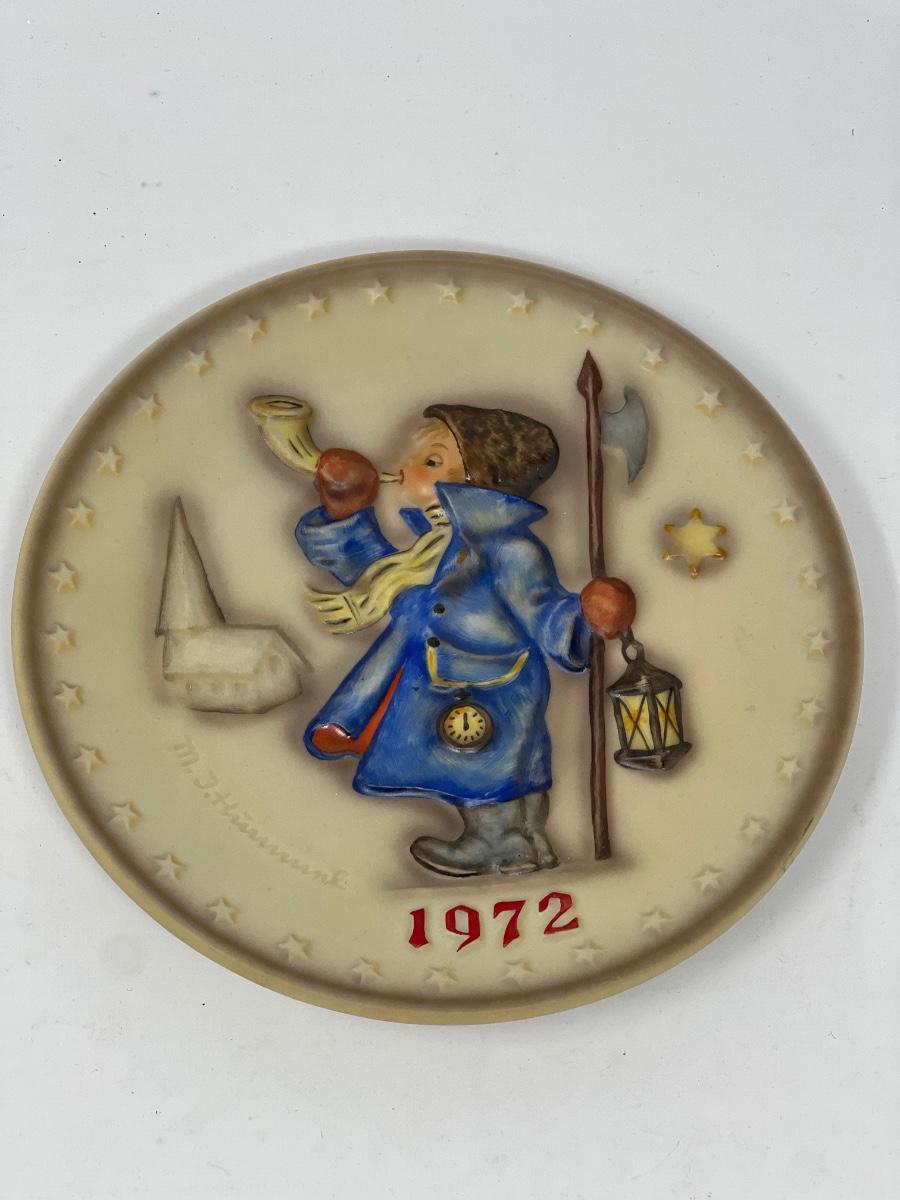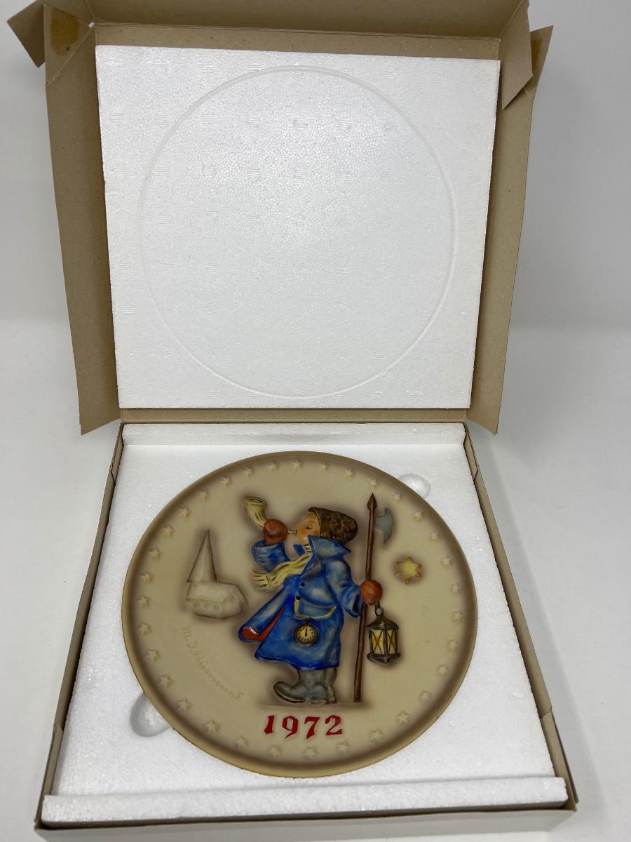 Made in Germany - Hummel 1972 colkector plate with little boy blue blowing horn. Has original box.