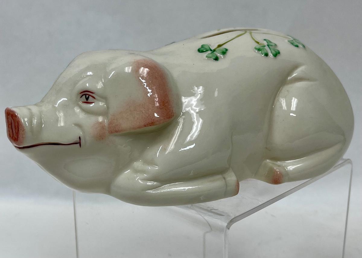 Belleek Piggy Bank Irish Pottery Pig With Shamrocks 1972