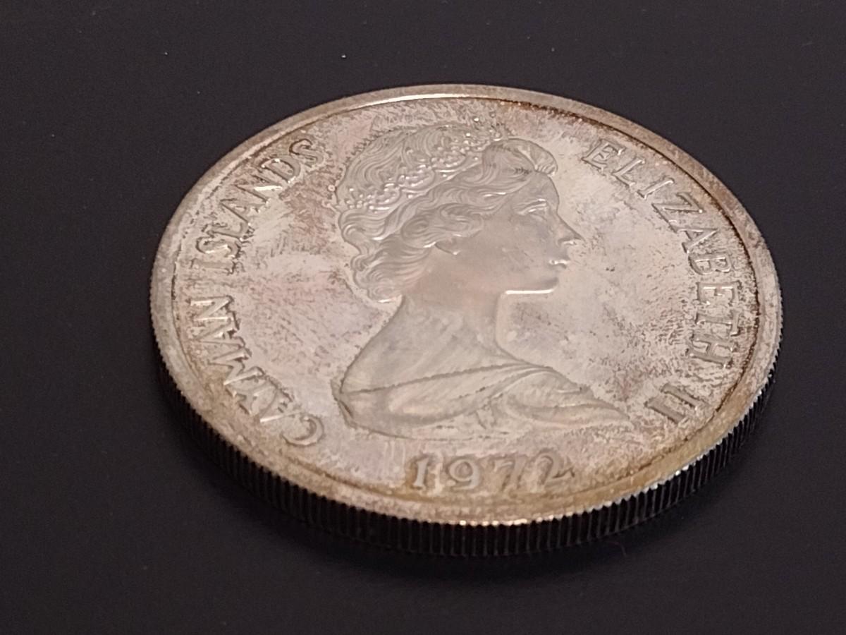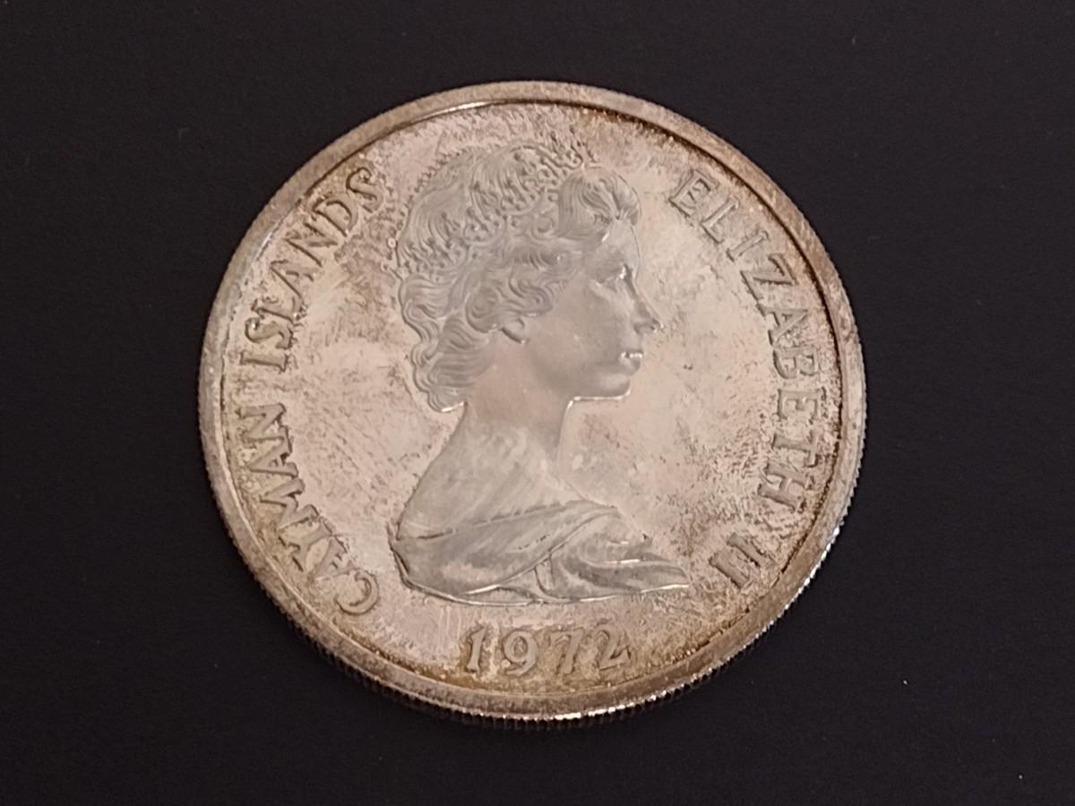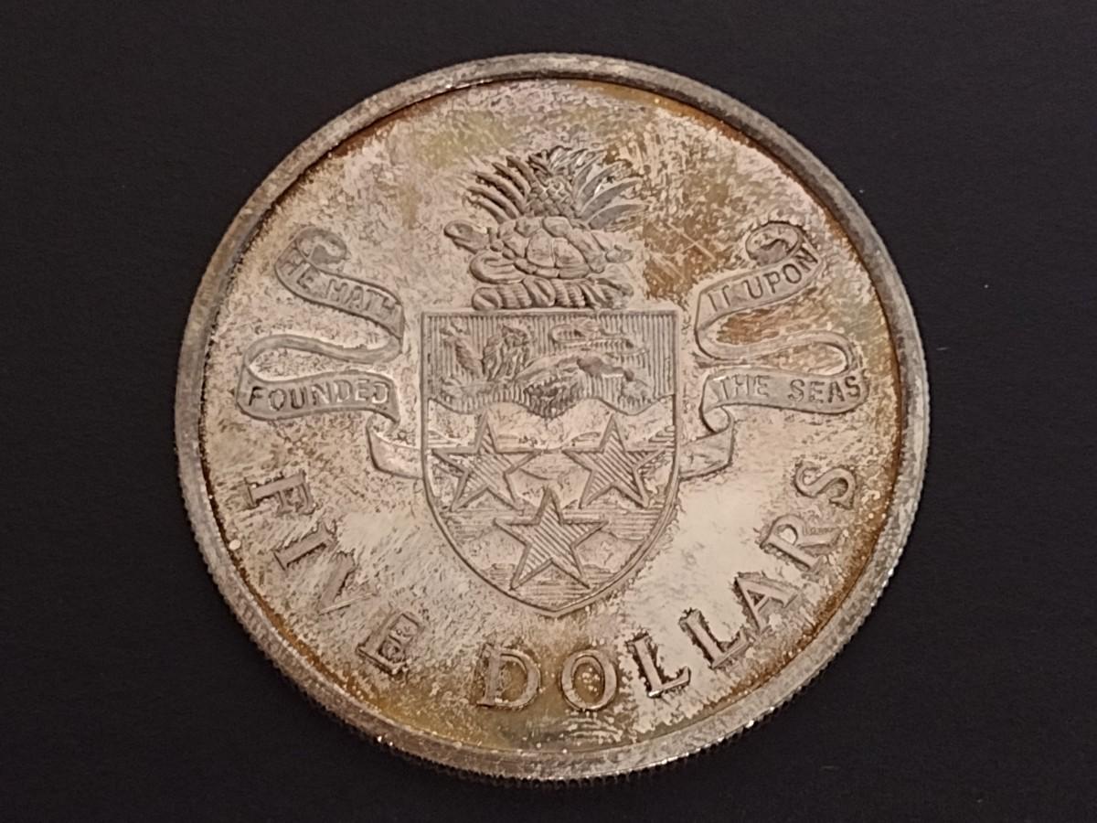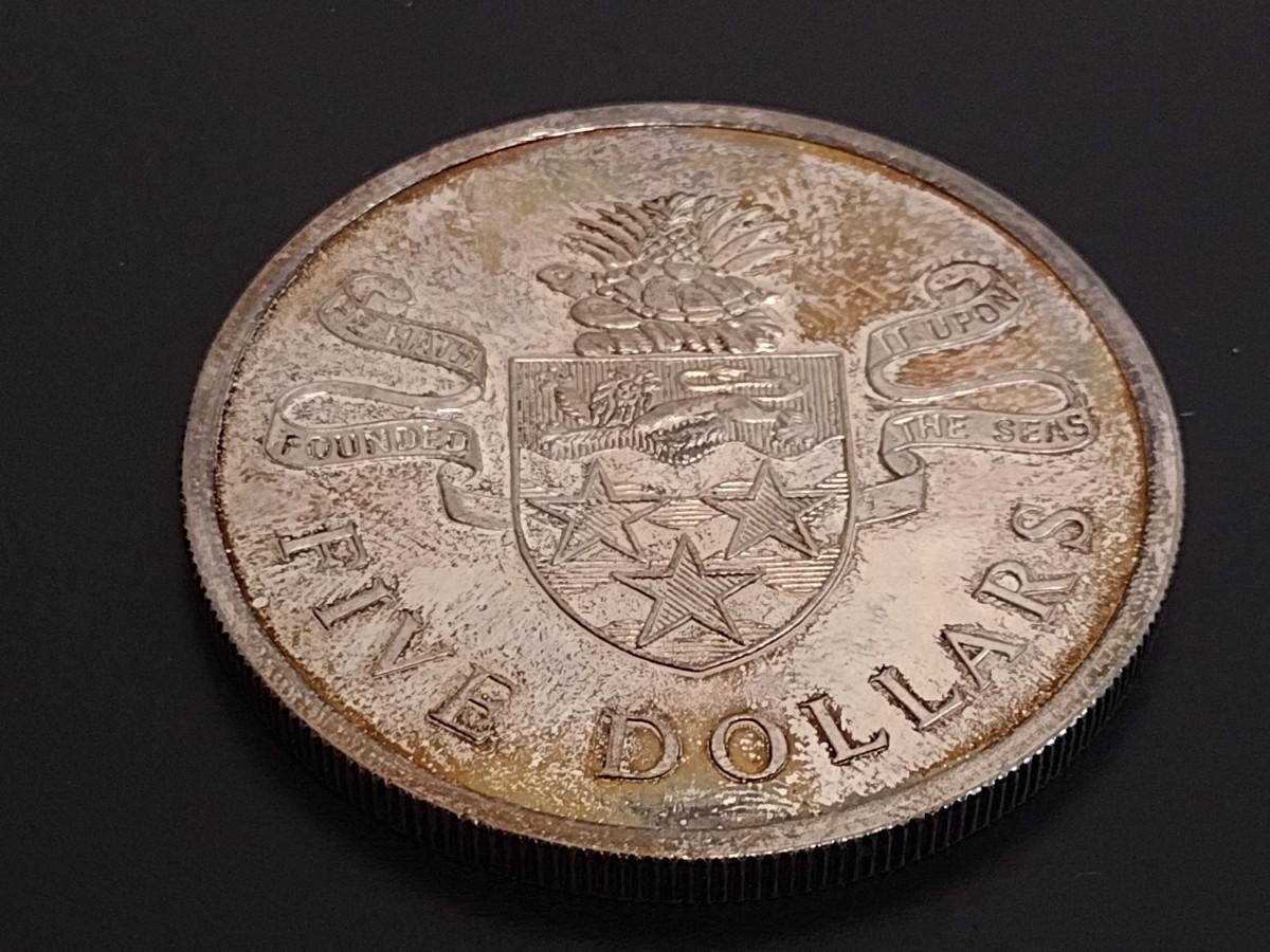 1972 Cayman Islands $5 Sterling Silver Circulated Coin 36 grams (#15). Weight is approximate