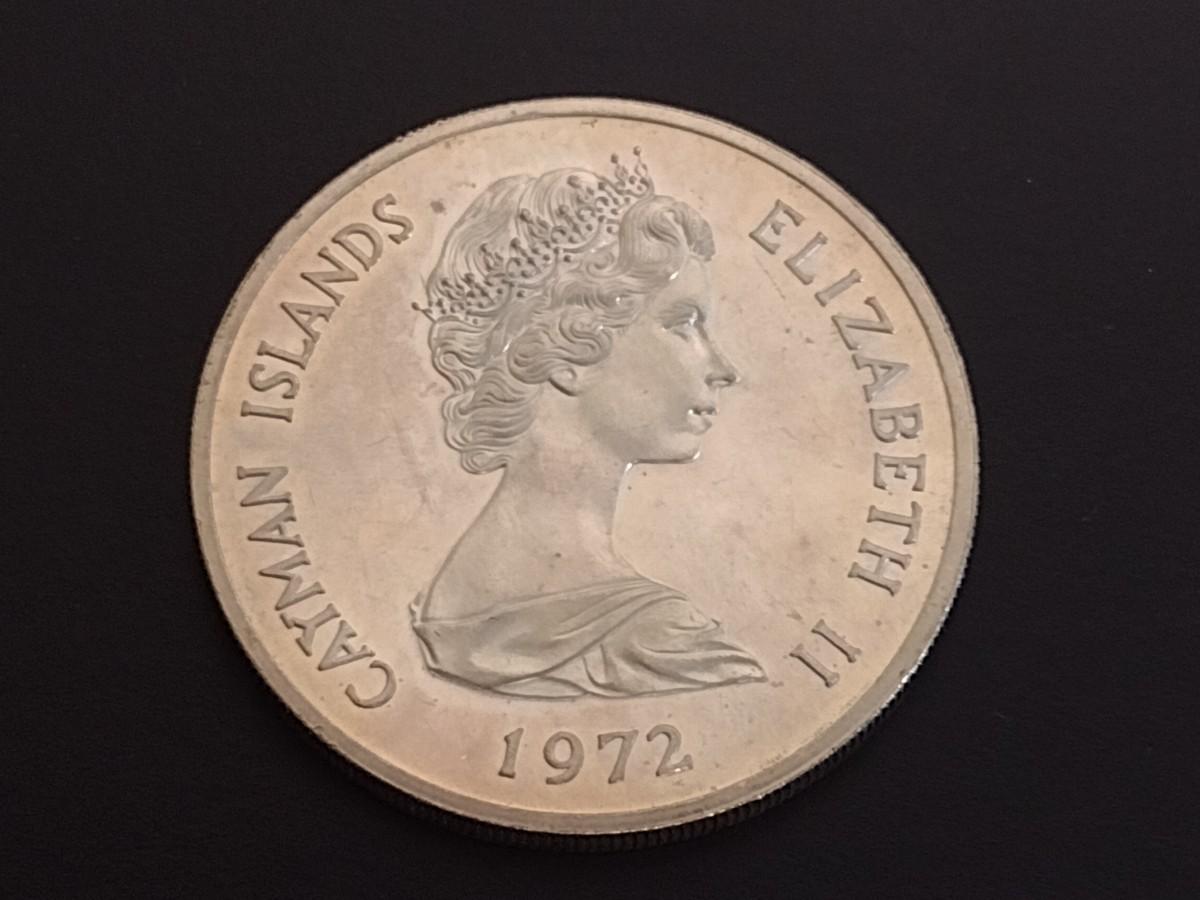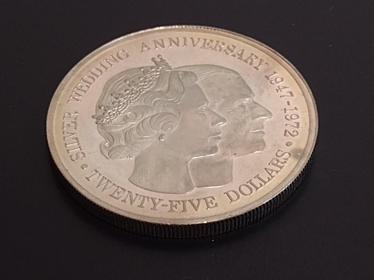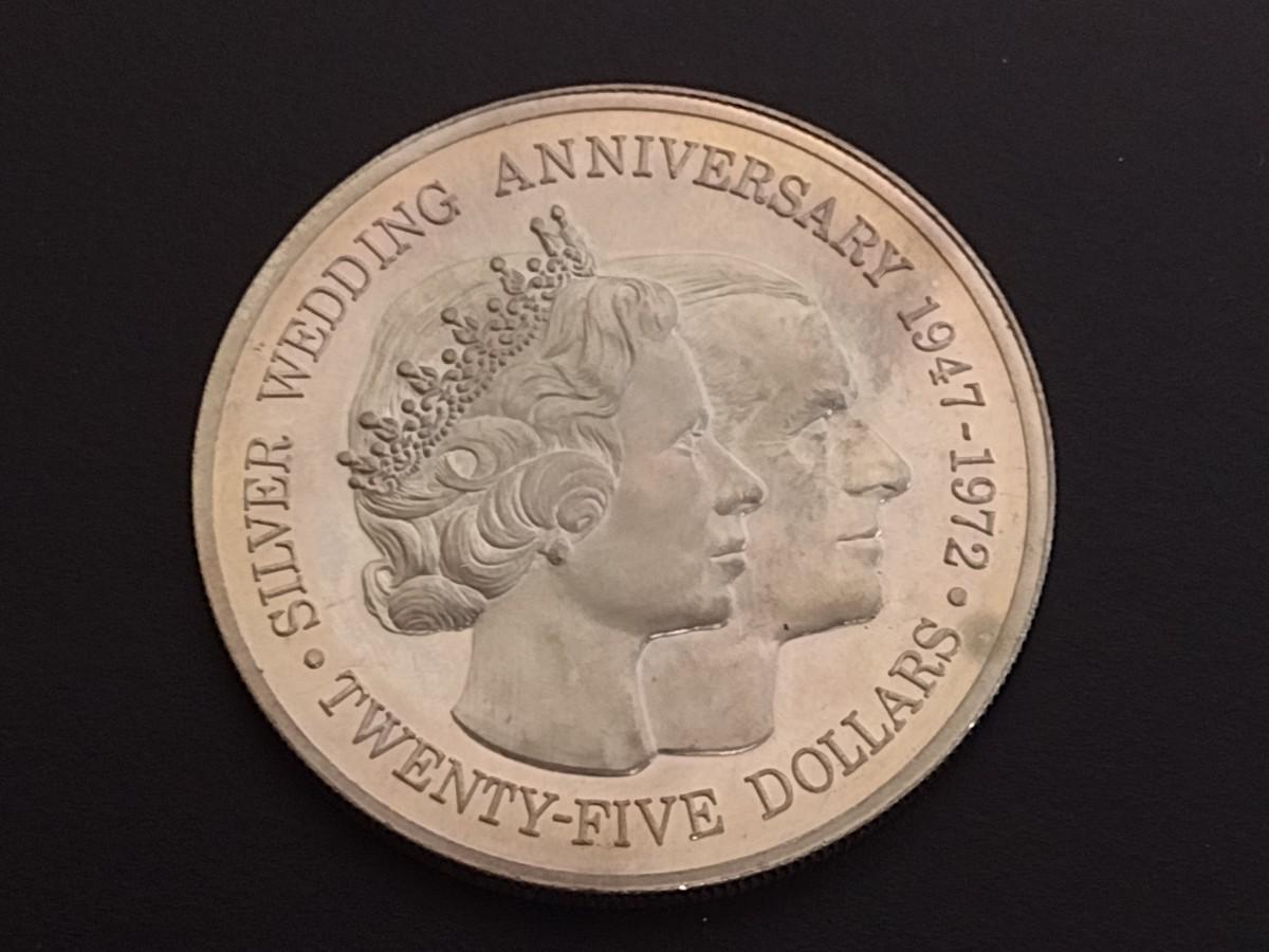 1972 Elizabeth II Cayman Islands $25 Sterling Silver Circulated Coin Silver Wedding Anniversary 47 grams (#16)